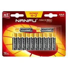 Технические характеристики NANFU alkaline aaa LR03 12B(10+2) Типоразмер AAA/мизинчиковая(R03;LR03;FR03) Элемент щелочной/алкалиновый(LR) Количество в упаковке 12 шт Напряжение 1.5 В Другое название мизинчиковые AAA Упаковка блистер