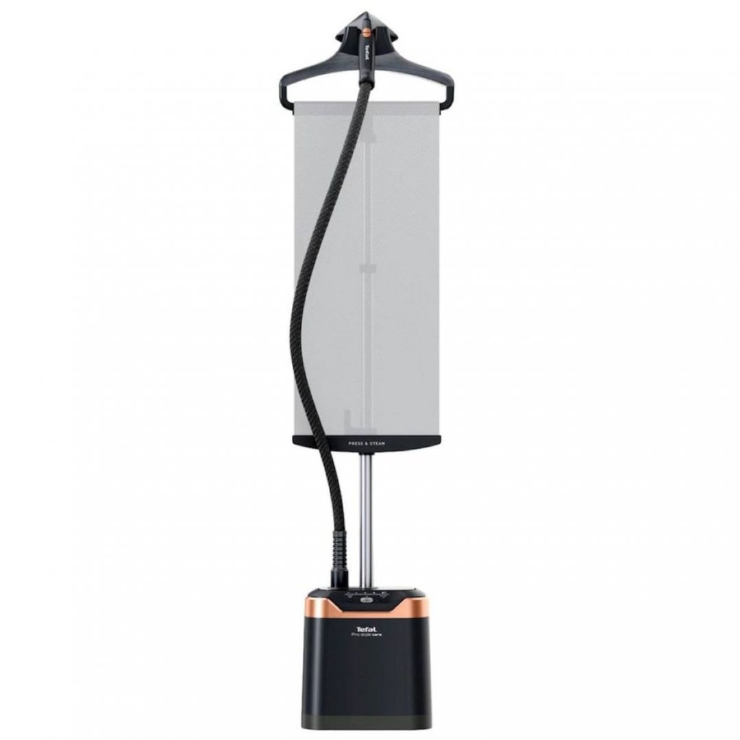 Для фиксации текстильных изделий модель оснащена вешалкой. Благодаря противокапельной системе на вещах не образуются мокрые пятна. Вертикальный отпариватель Tefal IT8480E1 мощностью 2000 Вт готов к использованию через 45 секунд после включения. Для обработки большого количества одежды без остановки в устройстве предусмотрен резервуар для воды объемом 1,3 л. Съемная конструкция облегчает наполнение. Регулируемая по высоте телескопическая стойка делает процесс отпаривания более удобным. Для безопасной эксплуатации в комплекте поставляется термостойкая рукавица.