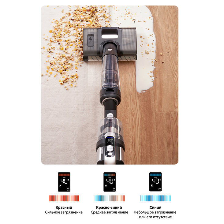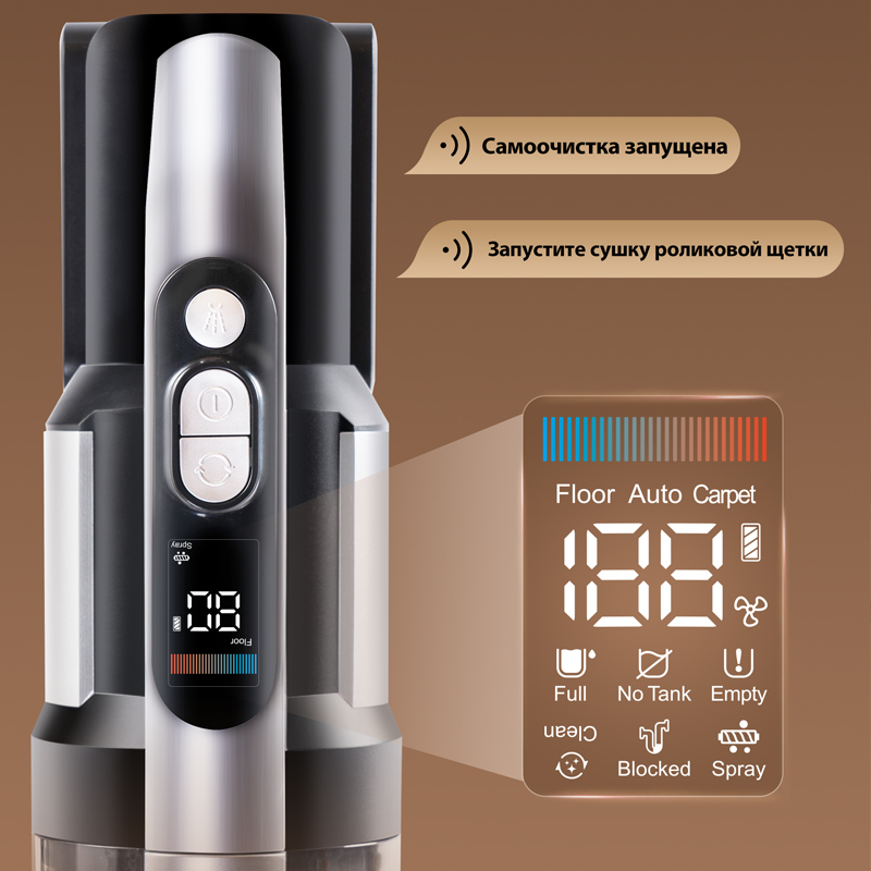 На LED-дисплее вы можете отслеживать уровень заряда, следить за индикатором чистоты пола и управлять режимами работы пылесоса. Дисплей оснащен функцией голосовых оповещений, позволяющих вам оптимизировать уборку. Голосовые оповещения доступны на 5 языках, включая русский.