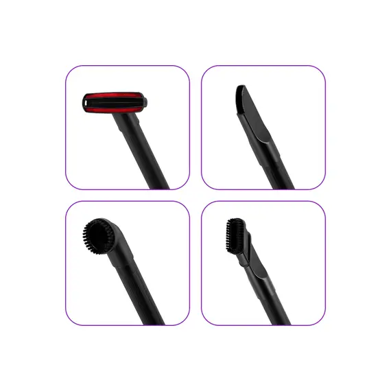 щетка для мебели - 1 шт., Узкая насадка с плоской ворсовой щеткой - 1шт., круглая ворсовая щетка - 1шт.