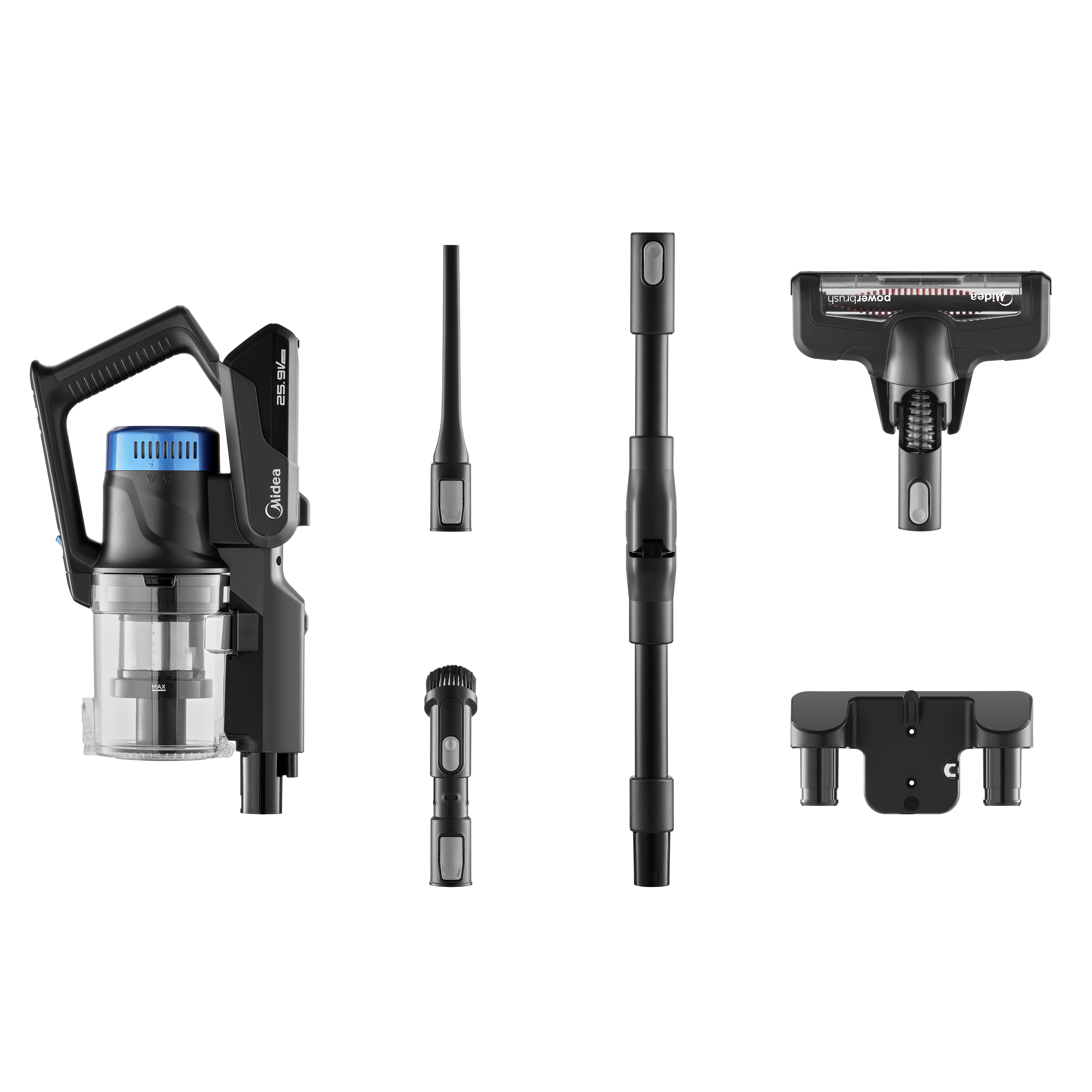 1. Щелевая насадка 2. Щетка 2-в-1 3. Настенное крепление