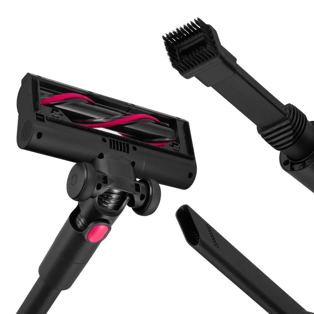 Пылесос комплектуется турбощёткой для тщательной очистки гладких и ковровых покрытий. В комплект входят насадка «2 в 1» с ворсом для труднодоступных мест, узкая насадка и держатель для насадок на удлинительной трубке.
