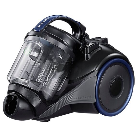 ножной переключатель вкл./выкл., мягкий бампер, индикатор заполнения пылесборника, управление мощностью на рукоятке