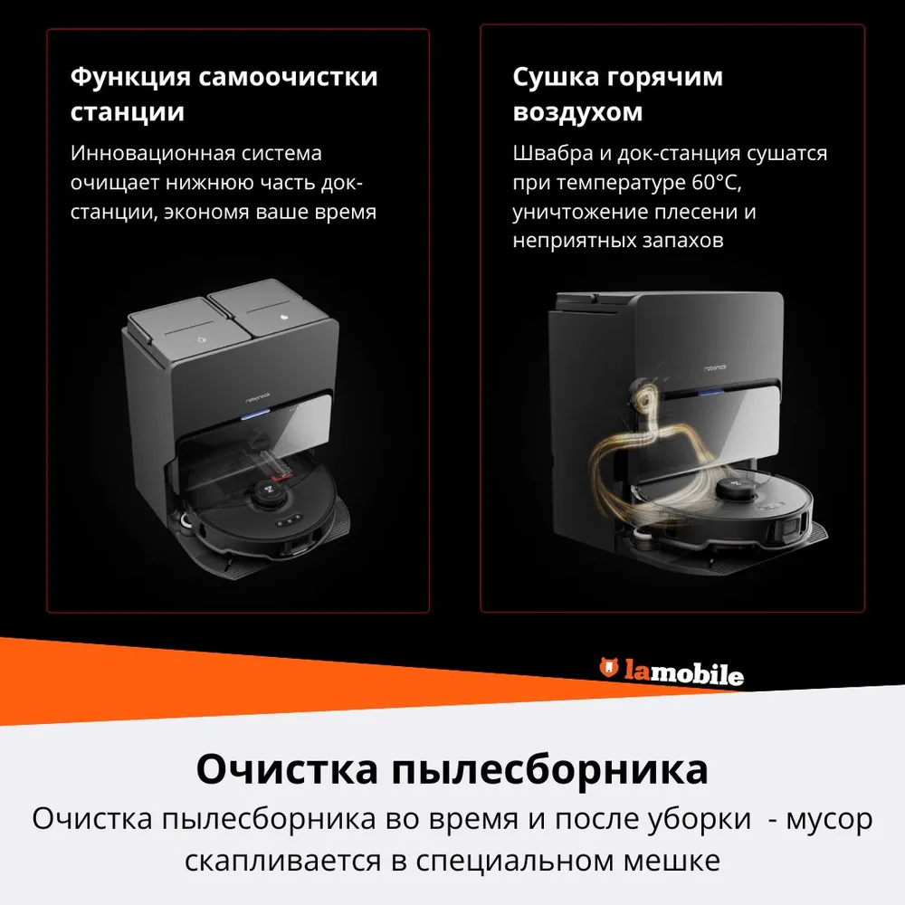 Робот-пылесос, станция самоочистки, кабель подключения в сеть, 2 мешка для сбора мусора, инструкция пользователя