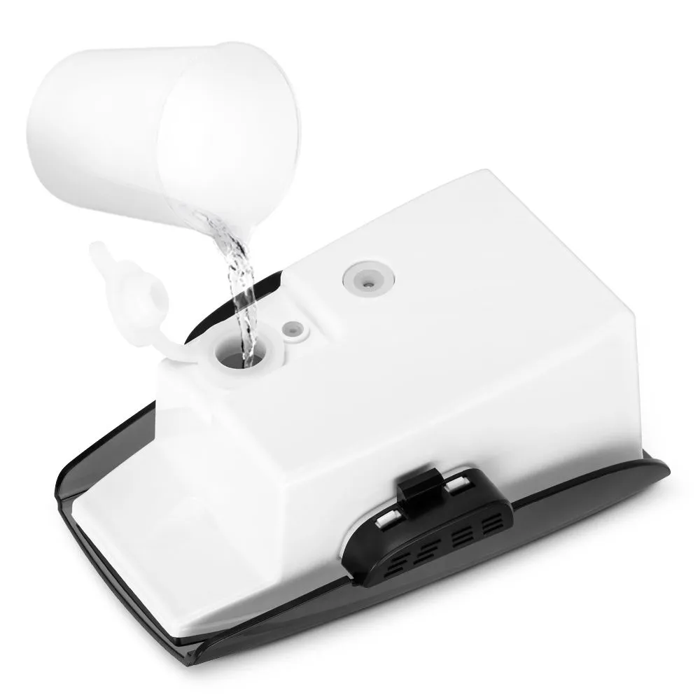 Для уменьшения шанса протекания, система пополнения воды в паровой швабре укреплена фиксаторами с двух сторон. Вливайте воду с помощью мерного стакана и воронки, чтобы не пролить ни капли