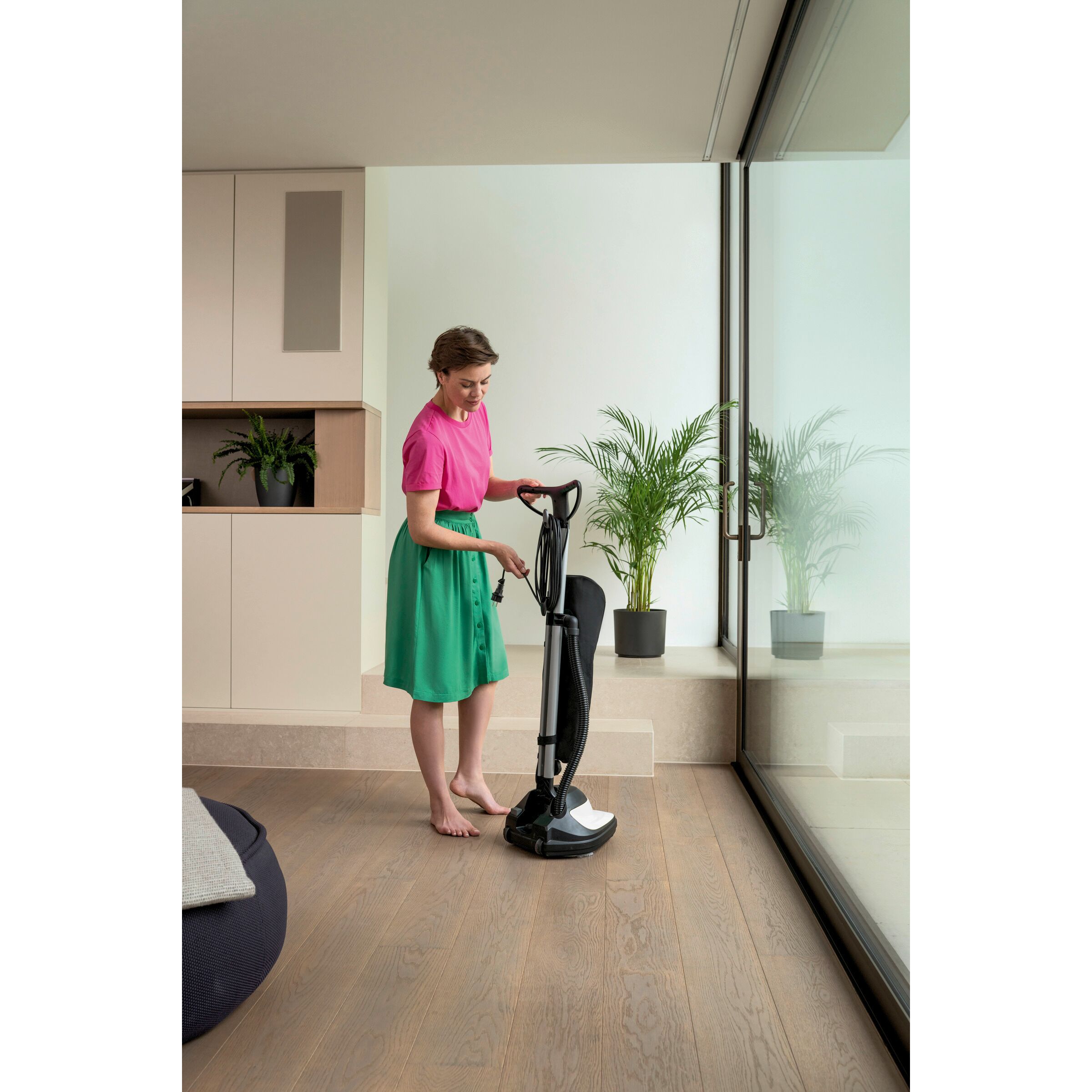 Красивый дом – это в том числе ухоженные полы. То, что прежде было весьма трудоемким процессом, состоящим из множества ручных операций, сегодня стало простым и приятным благодаря современному оборудованию. Полотер FP 303 демонстрирует впечатляющие результаты полировки на твердых напольных покрытиях, таких как паркет, ламинат, пробка, камень, линолеум или ПВХ, – благодаря высокой частоте вращения. После разблокировки ножного выключателя аппарат можно включать и выключать, просто поворачивая штангу. Полировальная пыль легко отсасывается с помощью функции всасывания. Оптимизированная треугольная форма полировальной головки позволяет добираться до самых дальних углов. А ее плоская поверхность – полировать даже под мебелью. Эргономичная ручка гарантирует комфортную и неутомительную работу. Система сматывания кабеля прямо на штанге позволяет быстро и аккуратно смотать и убрать кабель. Расположенный там же мешок из высококачественного текстиля предназначен для хранения бумажных фильтр-мешков. А специальный отсек для принадлежностей – для компактного размещения съемных падов для полировки. Колесики отличаются плавным ходом и позволяют легко перемещать FP 303 и экономить силы.