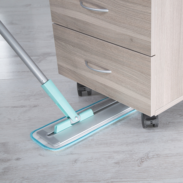 Классическая швабра Cosmic Home предназначена для влажной уборки любых видов напольных покрытий, в том числе и деликатных полов. Швабра Cosmic Home идеально подходит для тех, кто предпочитает регулировать степень влажности насадки самостоятельно. Супертонкая платформа из алюминия позволяет делать уборку в зазорах менее 1,5 см. Швабра оснащена телескопическим механизмом, что позволяет выбрать комфортную длину для вашего роста – минимальная 85см, максимальная длина 137 см. С помощью уникального слайд механизма черенок можно смещать относительно платформы в крайнее положение. С помощью этой опции легко делать уборку пола в труднодоступных местах, не отодвигая мебель. Мягкая ручка из вспененного пластика, удобная для захвата двумя руками, защищает руки от образования мозолей. Платформа легко вращается на 360 градусов, а равномерный прижим платформы к полу позволяет делать уборку без разводов. В комплекте к швабре предусмотрена щетка из пластика для отжима насадки и удаления шерсти, грязи и волос. Швабра Cosmic Home производится из ударопрочного ABS пластика. Насадка швабры из микрофибры обладает хорошей способностью впитывать и удерживать воду, легко отжимается, не впитывает запахи, прочно крепится к платформе швабры на липучки и выдерживает до 600 циклов уборки. Размер насадки больше, чем размер платформы для защиты мебели от царапин и повреждений при уборке. На ручке швабры есть петля для подвеса на крючок, что позволяет хранить ее компактно.