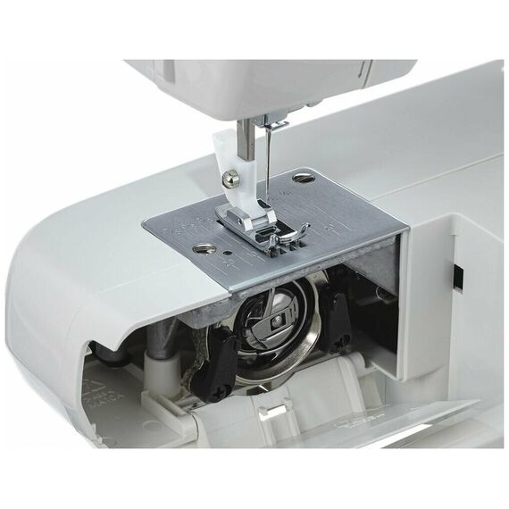 Электромеханическая швейная машинка с вертикальным челноком порадует качественным функционалом и минималистичным дизайном корпуса, и станет незаменимым помощником в воплощении ваших творческих идей. Машина обладает оптимальным набором функций, имеет рычаг обратного хода для выполнения закрепки или штопки и выполняет петлю в полуавтоматическом режиме.