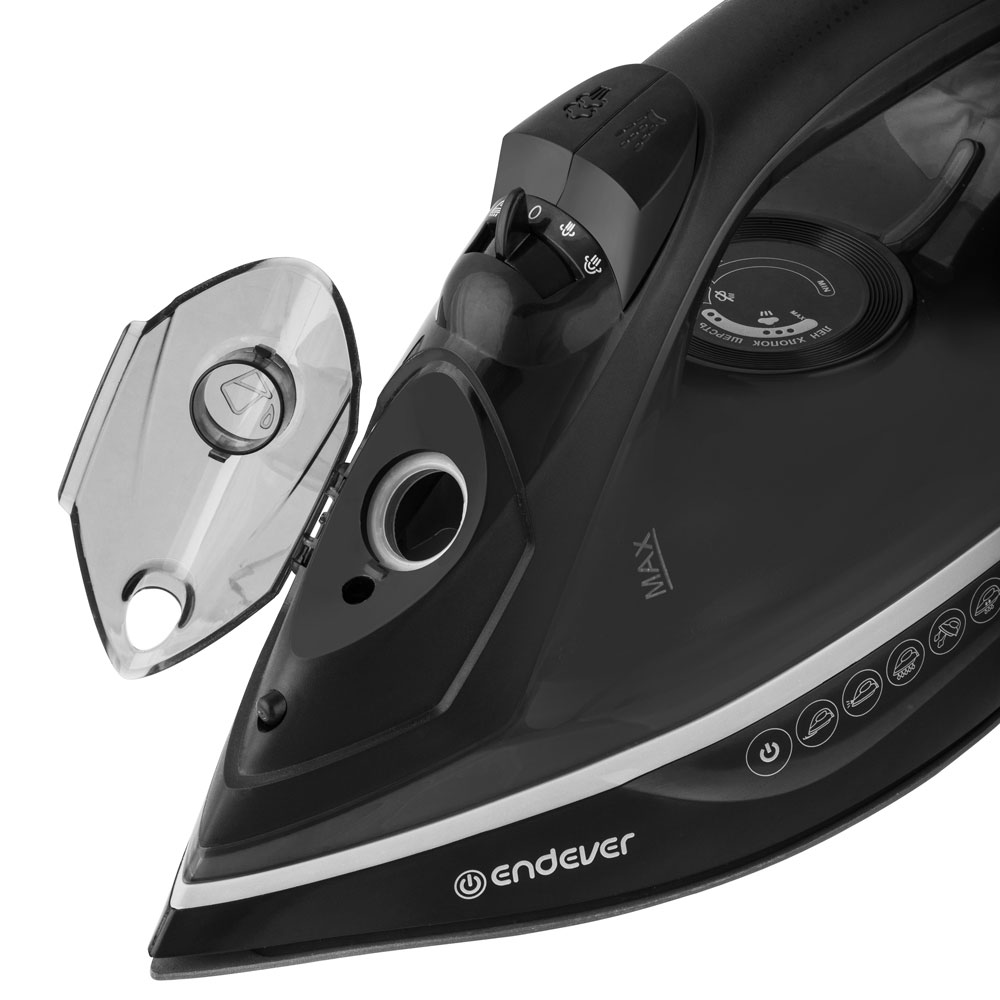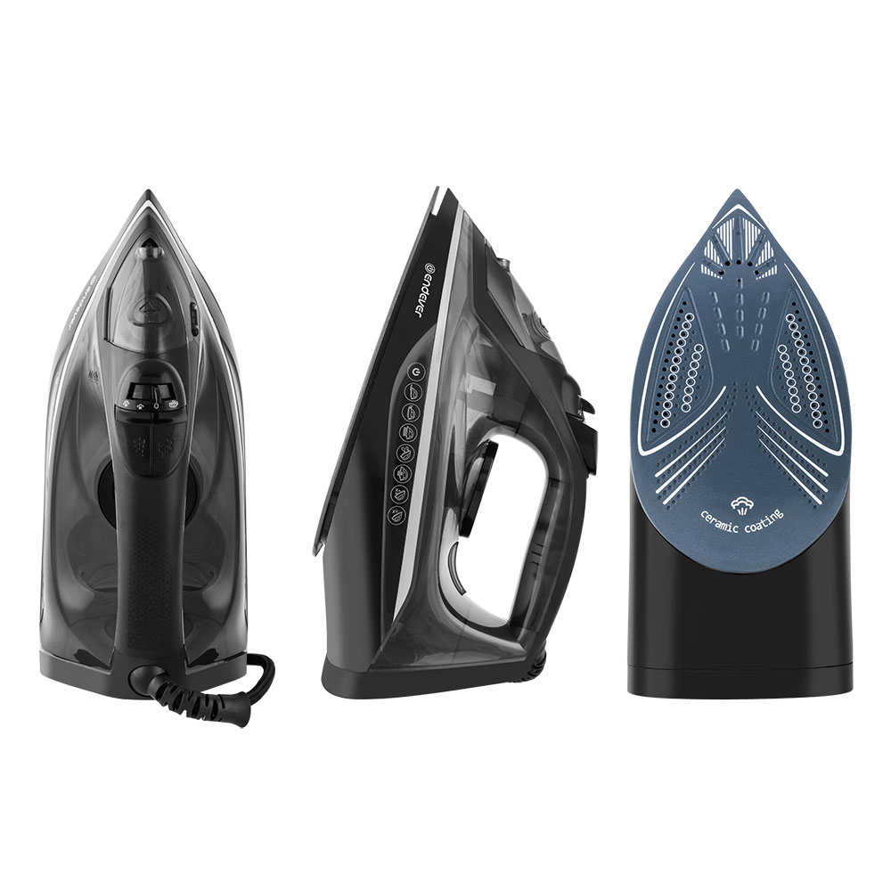 Сверхпрочная поверхность подошвы из керамики, Функция вертикального отпаривания, Сухой и влажный режим глажения, Мелкодисперсное разбрызгивание, Индикация уровня воды, Регулировка температуры, Система защиты от накипи, Функция антикапля, Функция автоотключения, Функция самоочистки