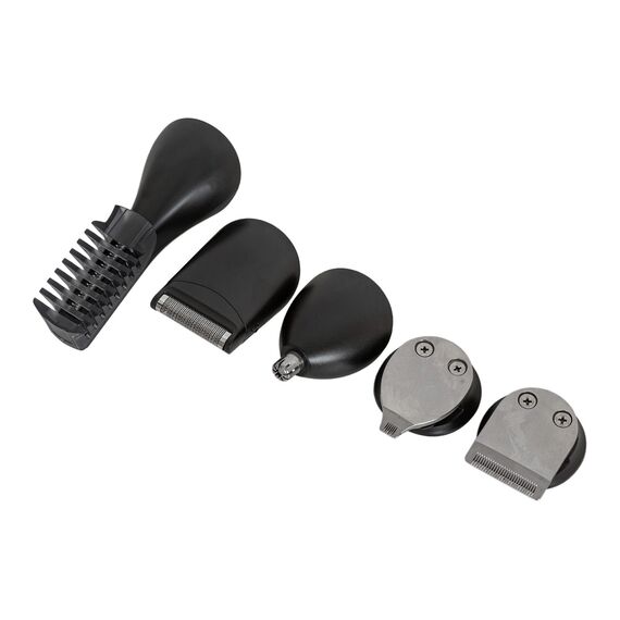 Полная комплектация подставка-пьедестал, полноразмерный триммер, триммер для дизайнерской стрижки, узкий триммер, 4 сменные насадки-расчески, USB кабель, масло, щеточка для чистки, расческа, триммер для носа и ушей, насадка для бритья, триммер для тела, триммер для бровей, гарантийный талон, инструкция на русском языке