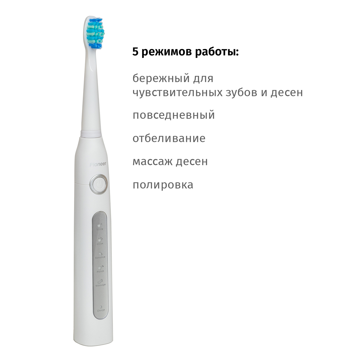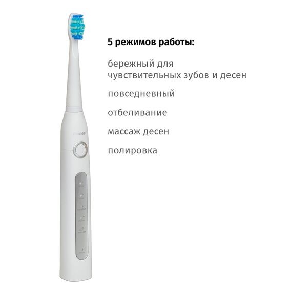 Режимы работы: отбеливание, повседневный, бережный для чувствительных зубов и десен, полировка, массаж десен