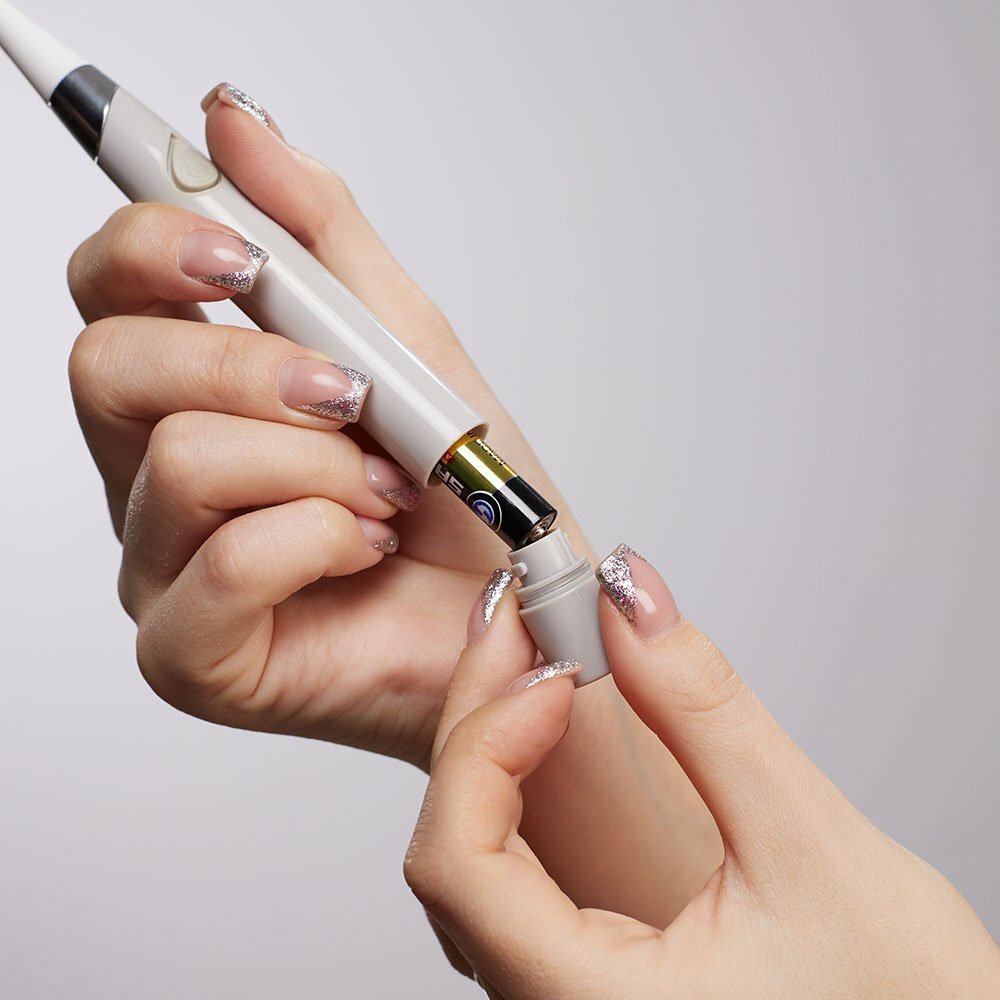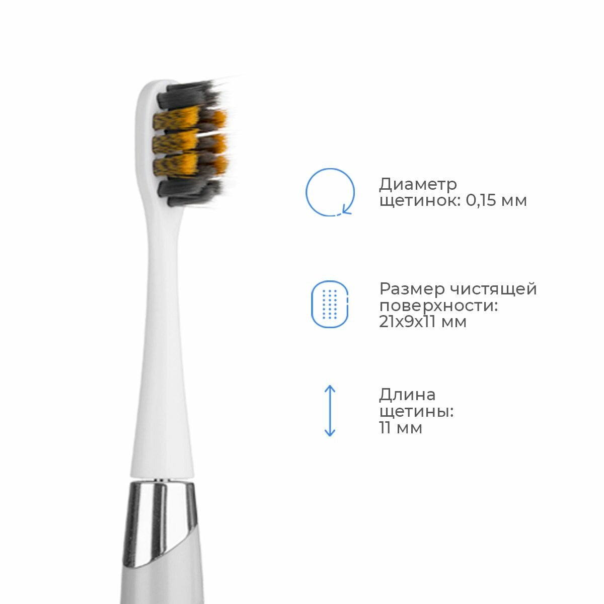 Основной блок зубной щетки - 1шт. Насадки с мягкой щетиной - 2 шт. Дорожный футляр - 1 шт. Батарейка ААА - 1 шт.