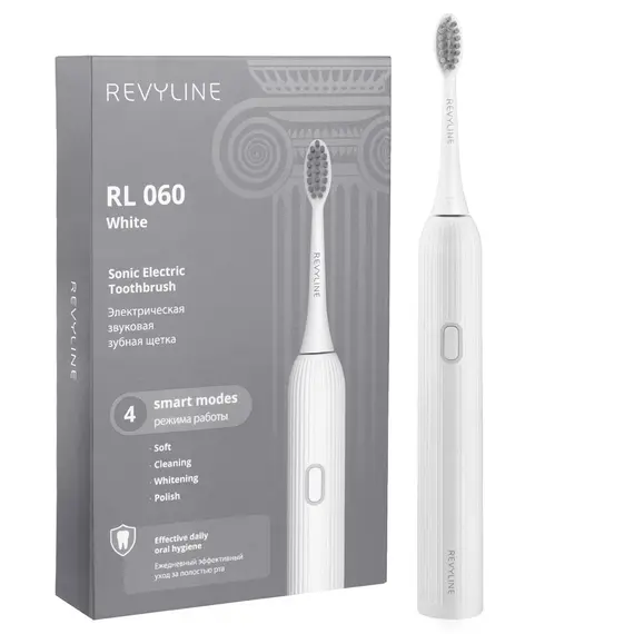 Звуковой принцип работы. X-Waves – эффект кавитации: формирование микропузырьков для лучшего удаления зубного налета. 4 режима работы – Soft cleaning, Cleaning, Whitening, Polishing. Материал корпуса – ABS-пластик. Премиальная щетина DuPont. Частота колебаний щетинок – 42 000 в мин. Таймер на 2 мин. Аккумулятор держит заряд до 120 дней. Световая индикация режимов. 3 насадки в комплекте. Совместима с насадками для щетки RL 060 любых цветов.