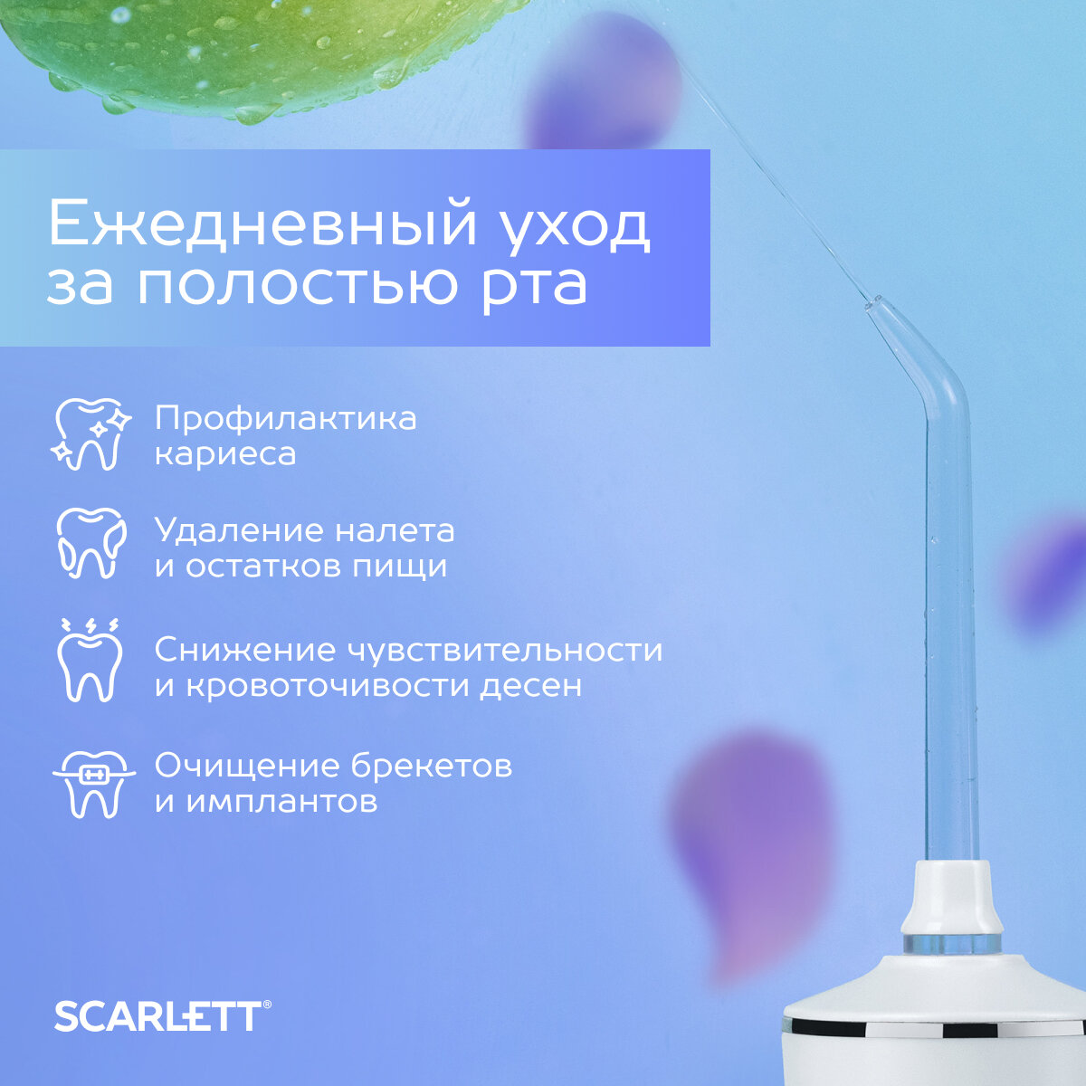 Использование ирригатора не только улучшает здоровье полости рта, но и вдохновляет на заботу о себе. Наш продукт предназначен для осознанных потребителей, которые понимают важность профилактики и здоровых привычек. Ирригатор Scarlett поможет устранить налет и бактерии, предотвратив заболевания десен и обеспечив безупречную чистоту. Более того, он идеально подходит для отбеливания зубов, помогая добиться сияющей и здоровой улыбки.