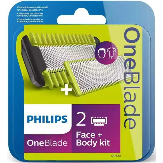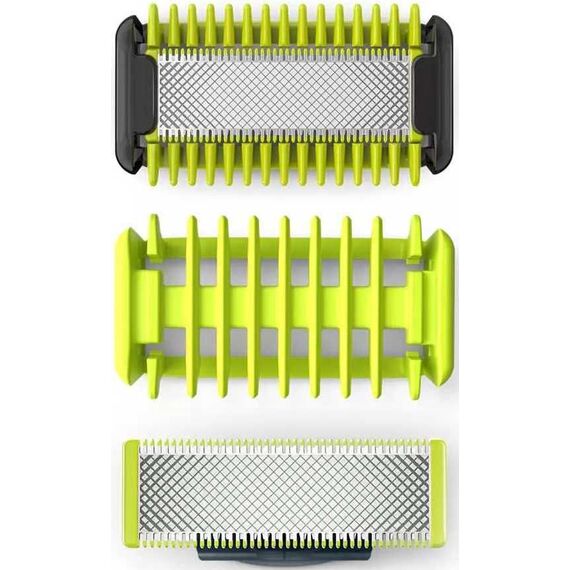 Описание Подравнивает, создает четкие контуры и бреет волосы любой длины. В комплект входит лезвие для лица, лезвие с защитной насадкой для тела, а также гребень для тела. Забудьте об использовании нескольких устройств, ведь OneBlade умеет все.