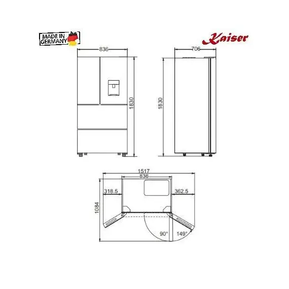 Минимальные размеры для встраивания (ШxГxВ), мм 836/706/1830
