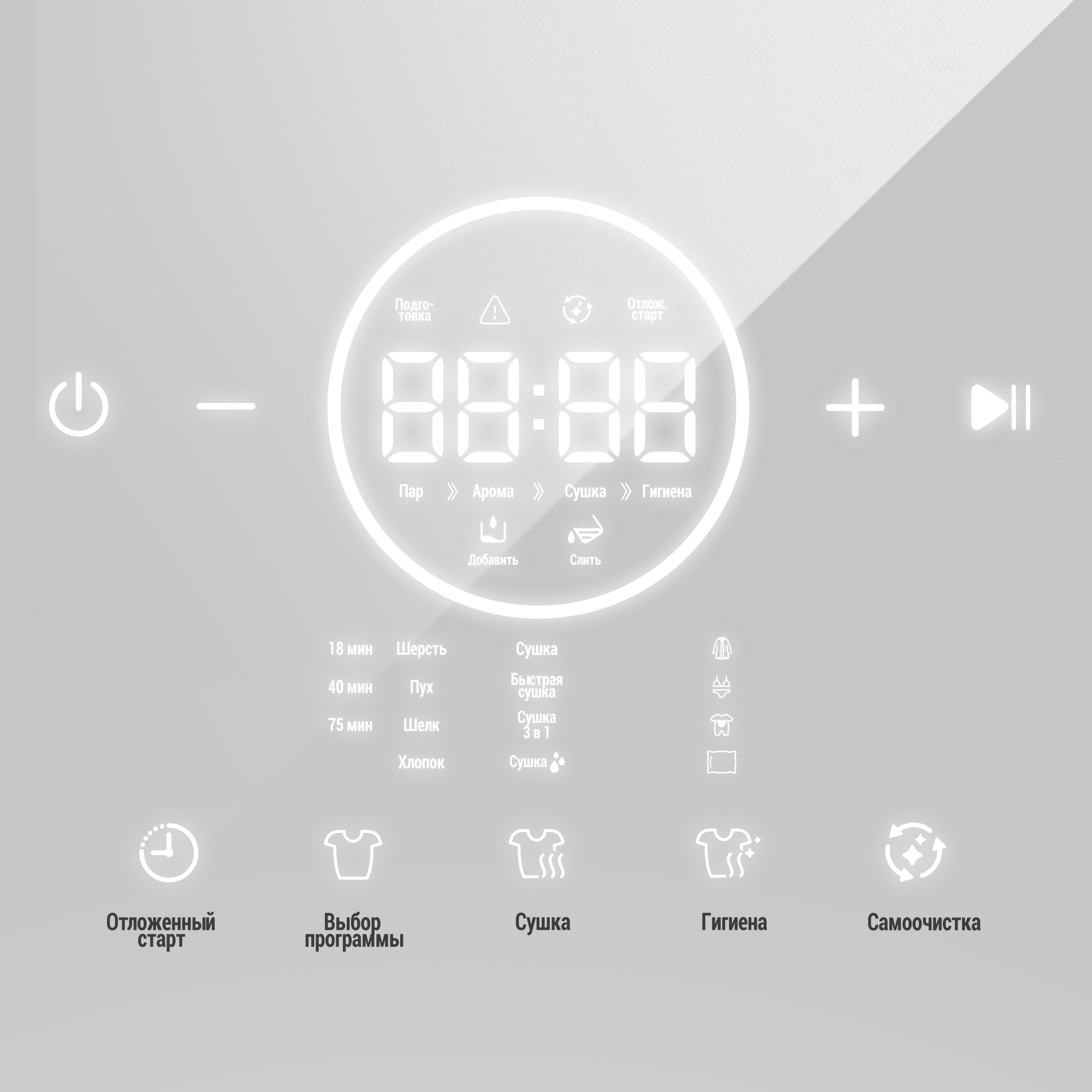 Режимы Основные программы, Сушка, Гигиена, Самоочистка