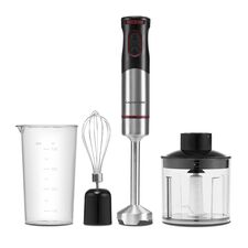 Технические характеристики Тип блендерный набор Управление кнопочное Мощность 1300 Вт Питание сеть Объем чаши 0.5 л Материал корпуса нержавеющая сталь, пластик Материал основной чаши пластик Материал погружной части насадок нержавеющая сталь Количество скоростей плавная...