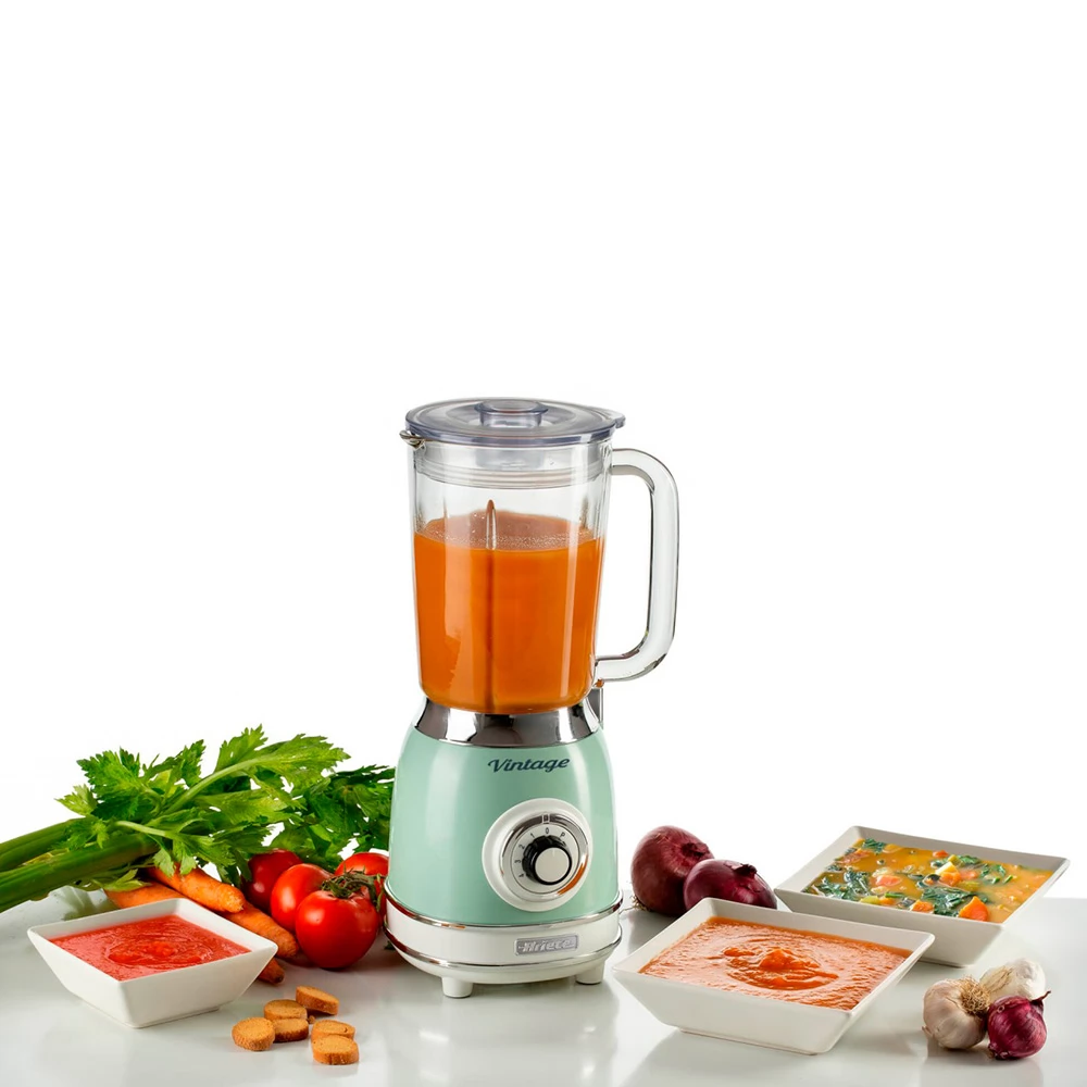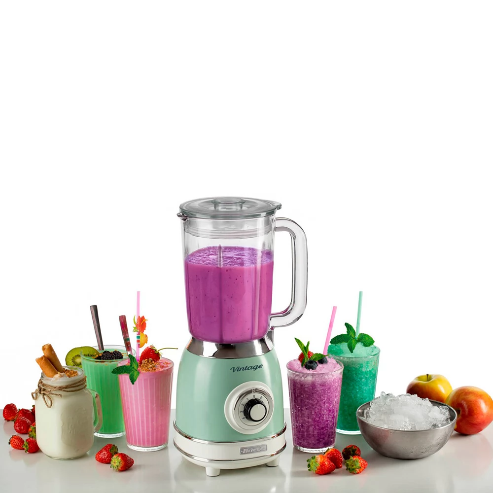 Ariete 583 создан для тех, кто стремится к здоровому образу жизни или любитель свежих смузи и вкусных шейков. Стильный винтажный дизайн сочетается с отличной производительностью и функциональностью. Мгновенно готовьте фруктовые и йогуртовые напитки на завтрак и питательные супы на обед. Эффективное смешивание различных по текстуре ингредиентов. Скорость работы стационарного блендера также можно изменять по желанию.