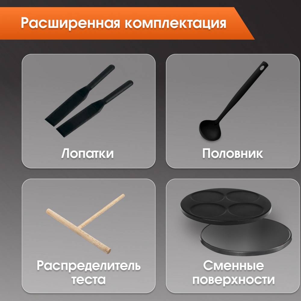 Комплектация лопатки, половник, распределитель теста, сменные поверхности