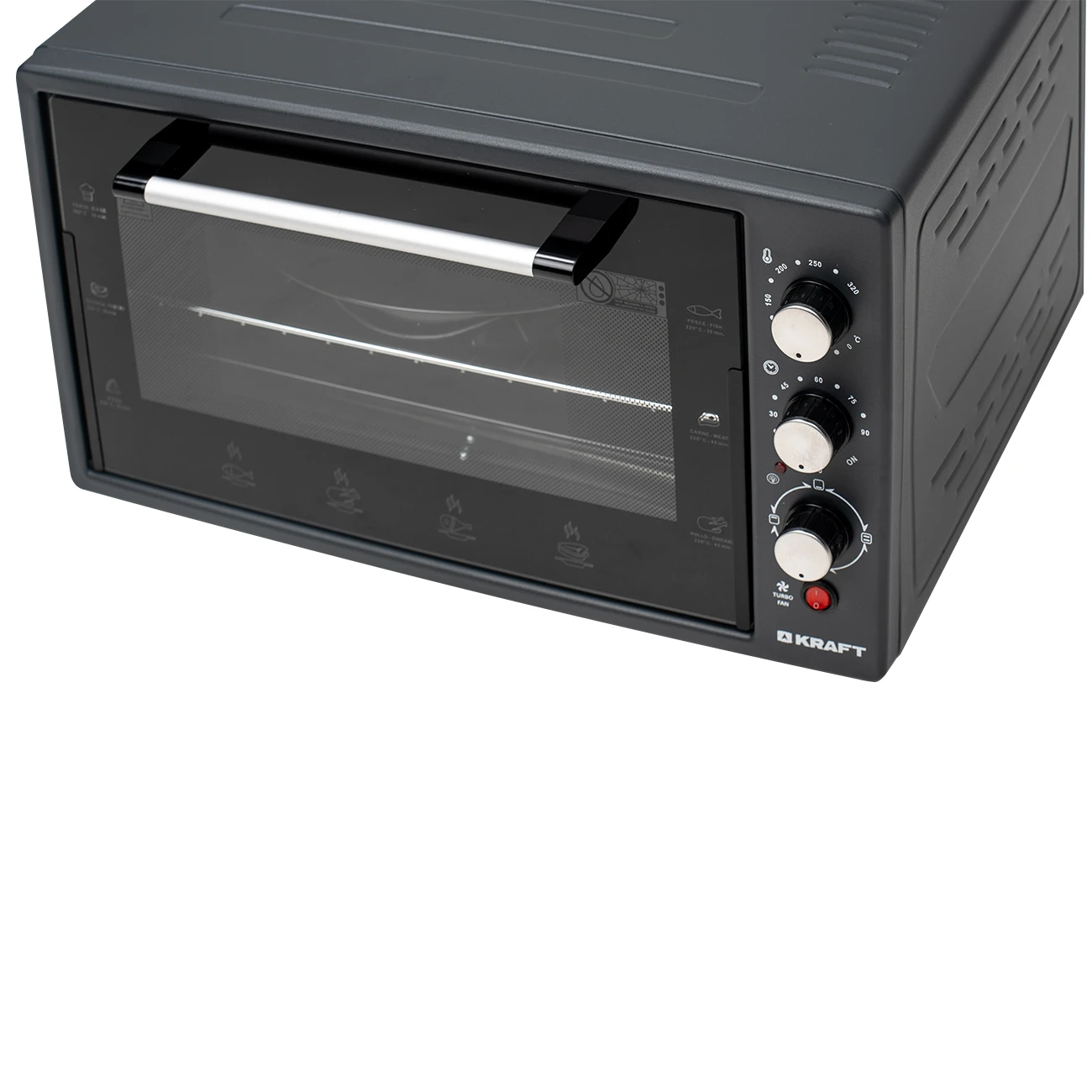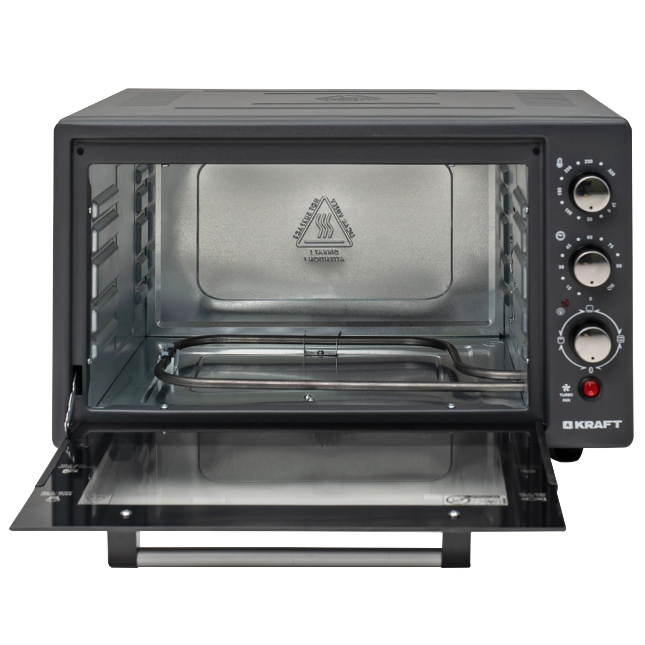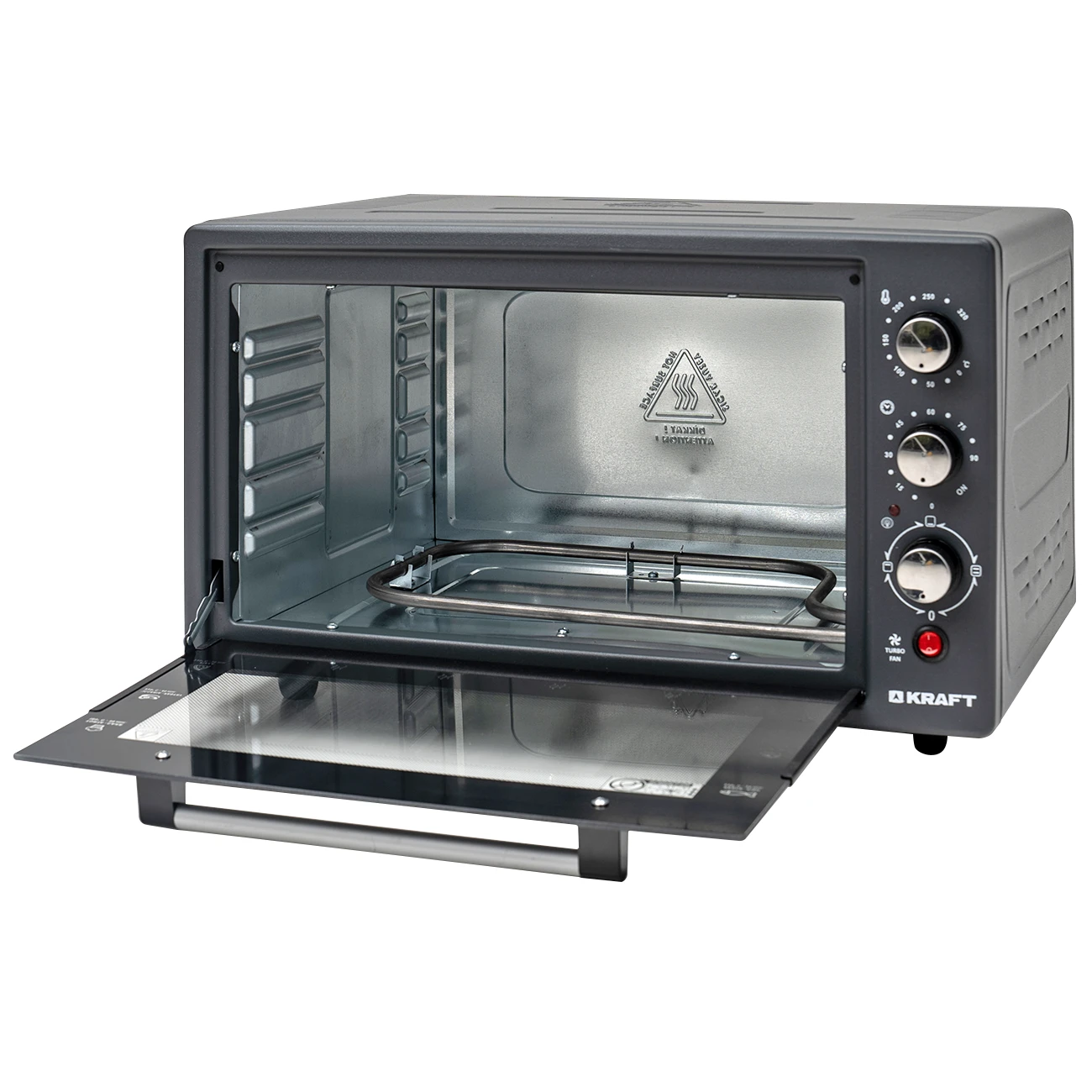 Компактная электрическая мини-печь Kraft KF-MO 3802 DGR позволяет готовить различные блюда быстро и удобно. Объем мини-печи составляет 38 литров. Мощность устройства 1500 Вт. В печи предусмотрено 3 стандартных режима нагрева – нижний, верхний и двухсторонний. Режим конвекции включается отдельно с каждым режимом нагрева. Температура приготовления регулируется в диапазоне от 50 °C до 320 °C. Также имеется таймер обратного отсчета на 90 минут.