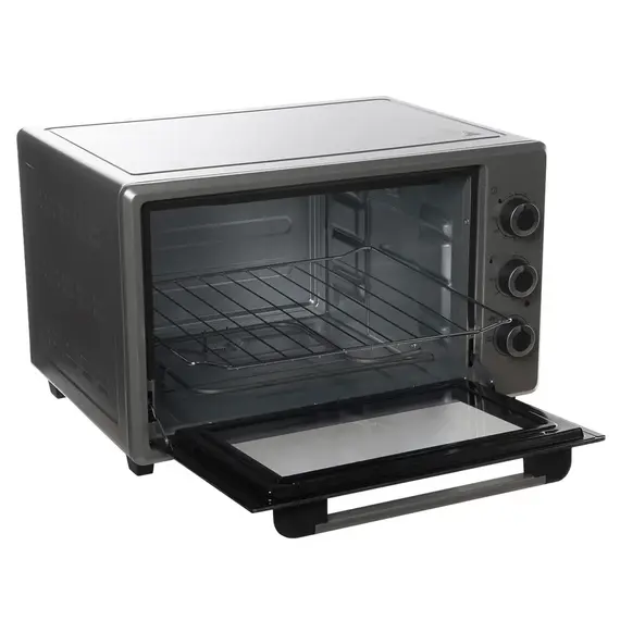 Благодаря своим небольшим размерам, мини-печь можно разместить на небольшой кухне, на даче или в автодоме. Двойное стекло хорошо сохраняет тепло и не допускает случайных ожогов. Противоскользящие ножки не позволяют мини-печи упасть с гладкой поверхности, а также не боятся нагрева. В комплекте с устройством идут противень, решётка и круглый поднос для пиццы, так что для базовых блюд покупка дополнительной утвари не требуется