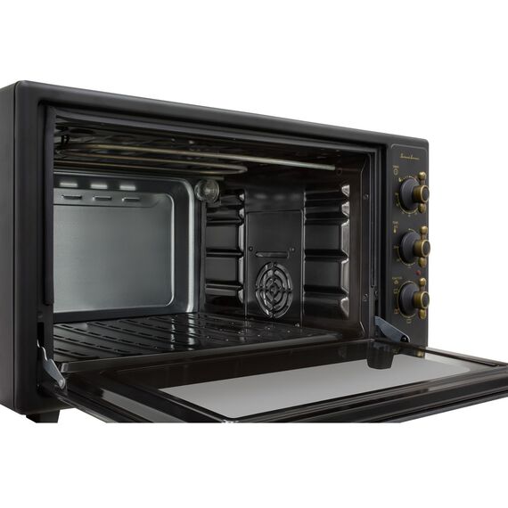 Объём мини-печи 50 литров, мощность 1600 Вт. Внутреннее покрытие камеры выполнено из эмали легкой очистки Easy Clean