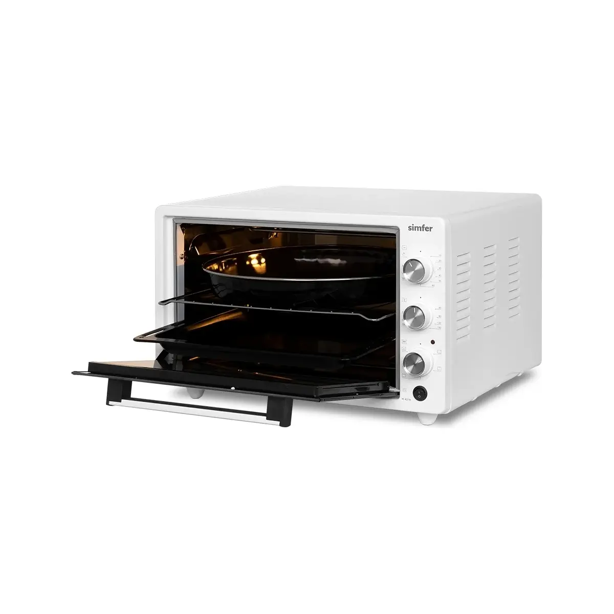 Мини-печь SImfer Albeni Plus, 6 режимов, конвекция M4216 имеет шесть рабочих режимов, в число которых входят: верхний нагрев; нижний нагрев; комбинированный нагрев (верхний и нижний); вертел; нижний нагрев с конвекцией; комбинированный нагрев с конвекцией. Первые два лучше подходят для подогрева пищи. Третий позволяет приготовить практически любое блюдо. Вертел становится отличным дополнением к трем предыдущим, особенно – комбинированному нагреву, так как позволяет приготовить, например, курицу гриль с ароматной и очень вкусной хрустящей корочкой.