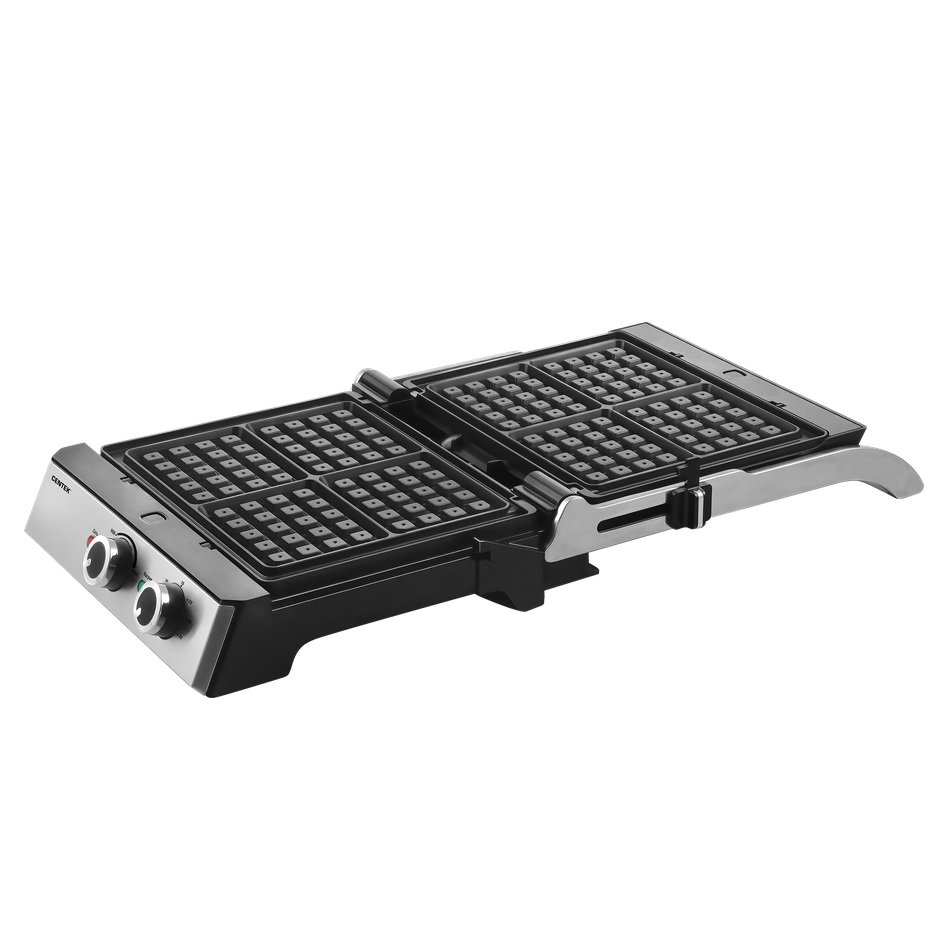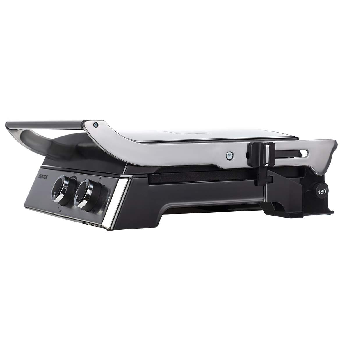 Контактный гриль Centek предназначен для жарки сочных мясных, овощных или рыбных блюд на гриле. Антипригарное покрытие рабочих панелей и поддон для сбора масла не дает продуктам пригореть и упрощает мытье после готовки. Нескользящие и устойчивые ножки.