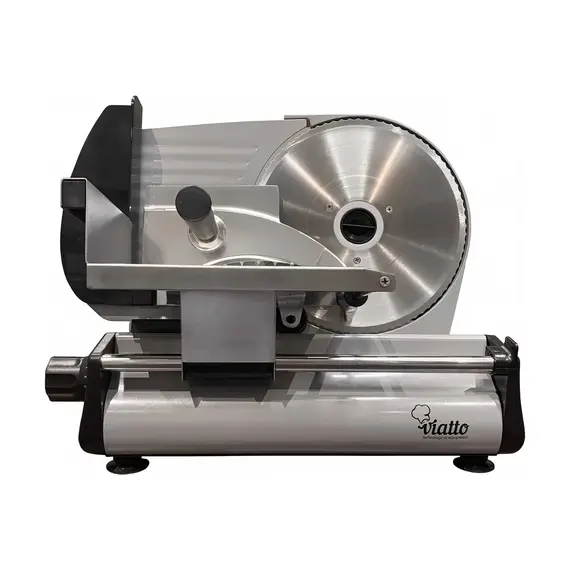 Слайсер VIATTO VA-MS2218W используется на предприятиях общественного питания и торговли. Профессиональная ломтерезка предназначена для нарезки мяса, сыра, колбасных изделий и других продуктов питания на ровные и равные ломтики. Модель оснащена съемной кареткой, значительно облегчающей процесс очистки, толкателем из прозрачного пластика и резиновыми ножками, предотвращающими скольжение.