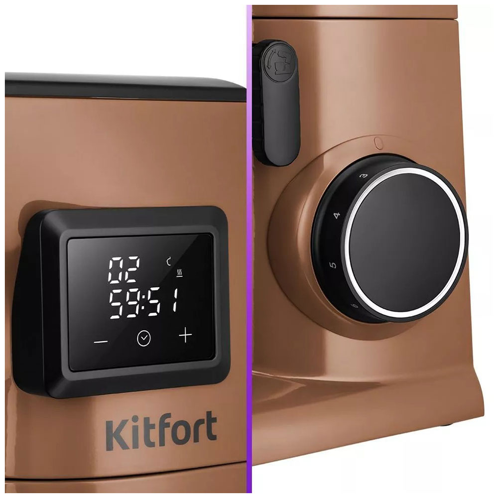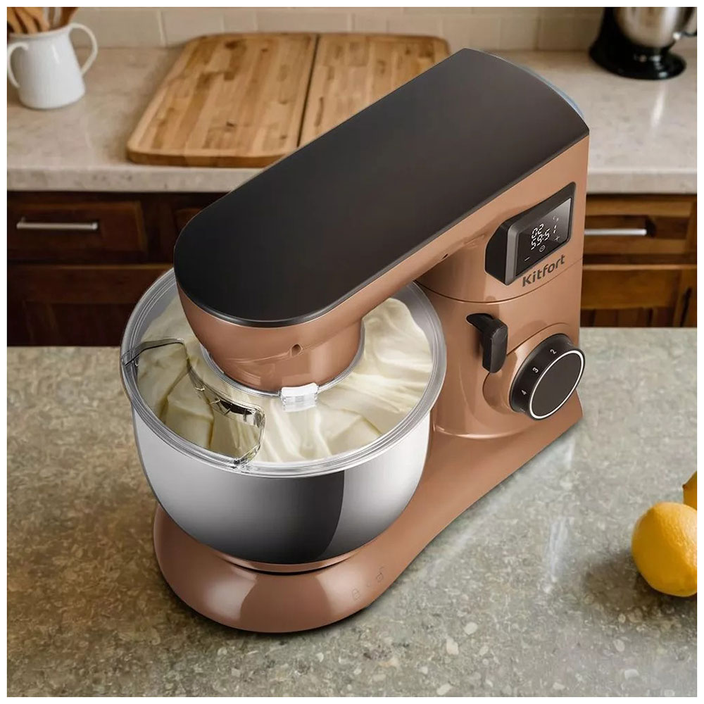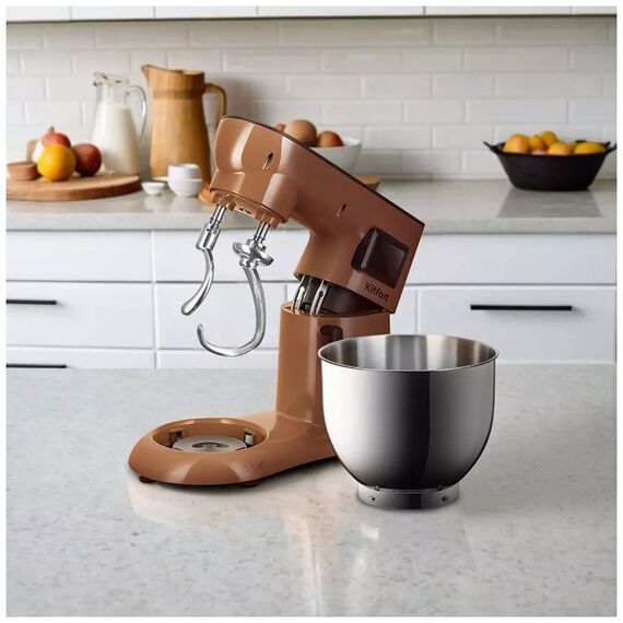 Миксер Kitfort KT-4409 оснащен большой чашей ёмкостью 7 литров. Чаша изготовлена из высококачественной нержавеющей стали, она прочная, и в ней можно смешивать даже горячие ингредиенты.