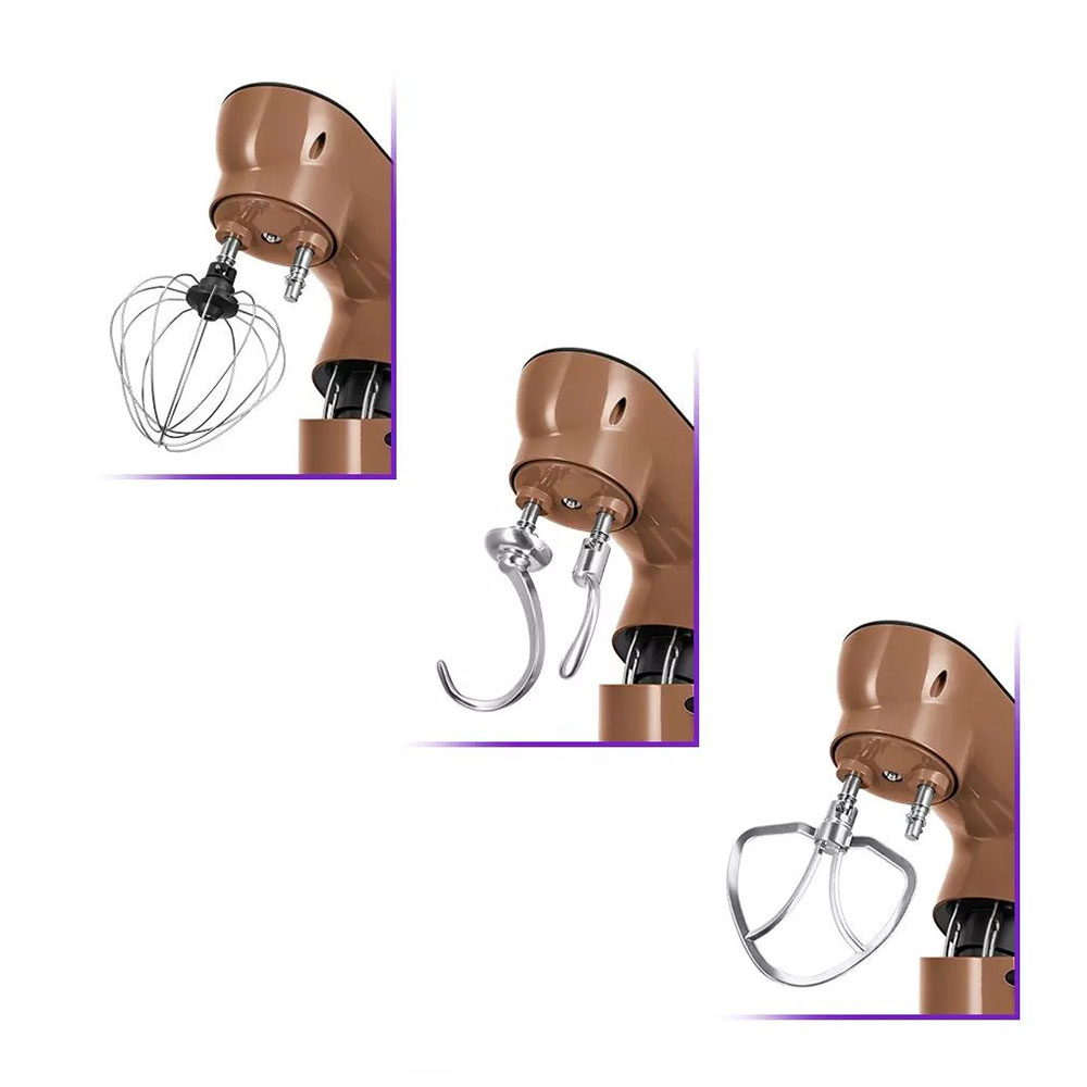 Венчик для взбивания служит для яичных белков, сливок, замешивания жидкого теста. Крюки для замешивания подходят для густого теста. Насадка для смешивания используется для негустых ингредиентов, картофельного пюре, томатной пасты, теста для тортов.