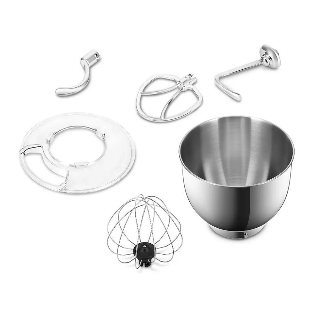 Миксер оснащен планетарной системой смешивания: во время работы насадка вращается вокруг своей оси и одновременно движется по окружности по внутреннему объему чаши. Это обеспечивает идеальное качество смешивания без комков.