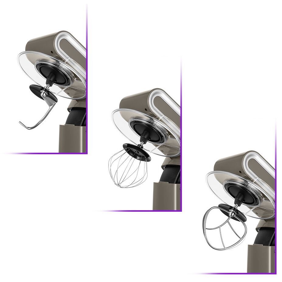 Миксер оснащён планетарной системой смешивания: во время работы насадка вращается вокруг своей оси и одновременно движется по окружности по внутреннему объёму чаши. Это обеспечивает идеальное качество смешивания без комков.