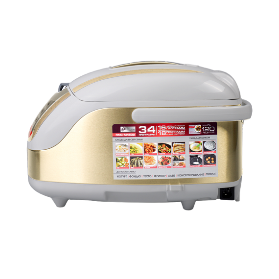 Мультиварка М4502 оснащена 34 программами приготовления и целым набором практичных опций: автоподогрев, разогрев, отложенный старт до 24 часов.