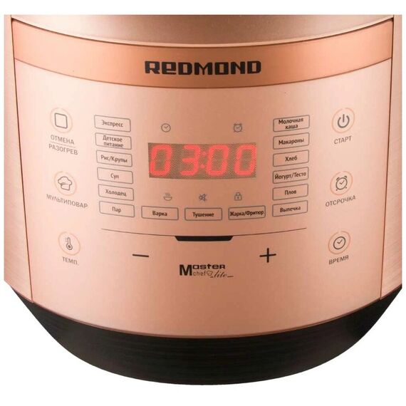 16 автоматических программ и 29 программ ручной настройки; полезный объем чаши - 3.15 л; автоподогрев до 12 часов; длина шнура электропитания - 1м; совместимая чаша - REDMOND RB-A432