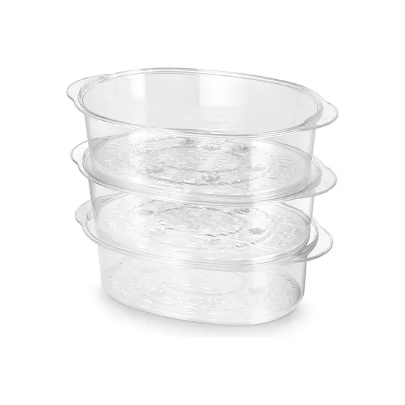 Пароварка оснащена тремя паровыми корзинами, что позволит приготовить обед или ужин из нескольких блюд сразу на всю семью.