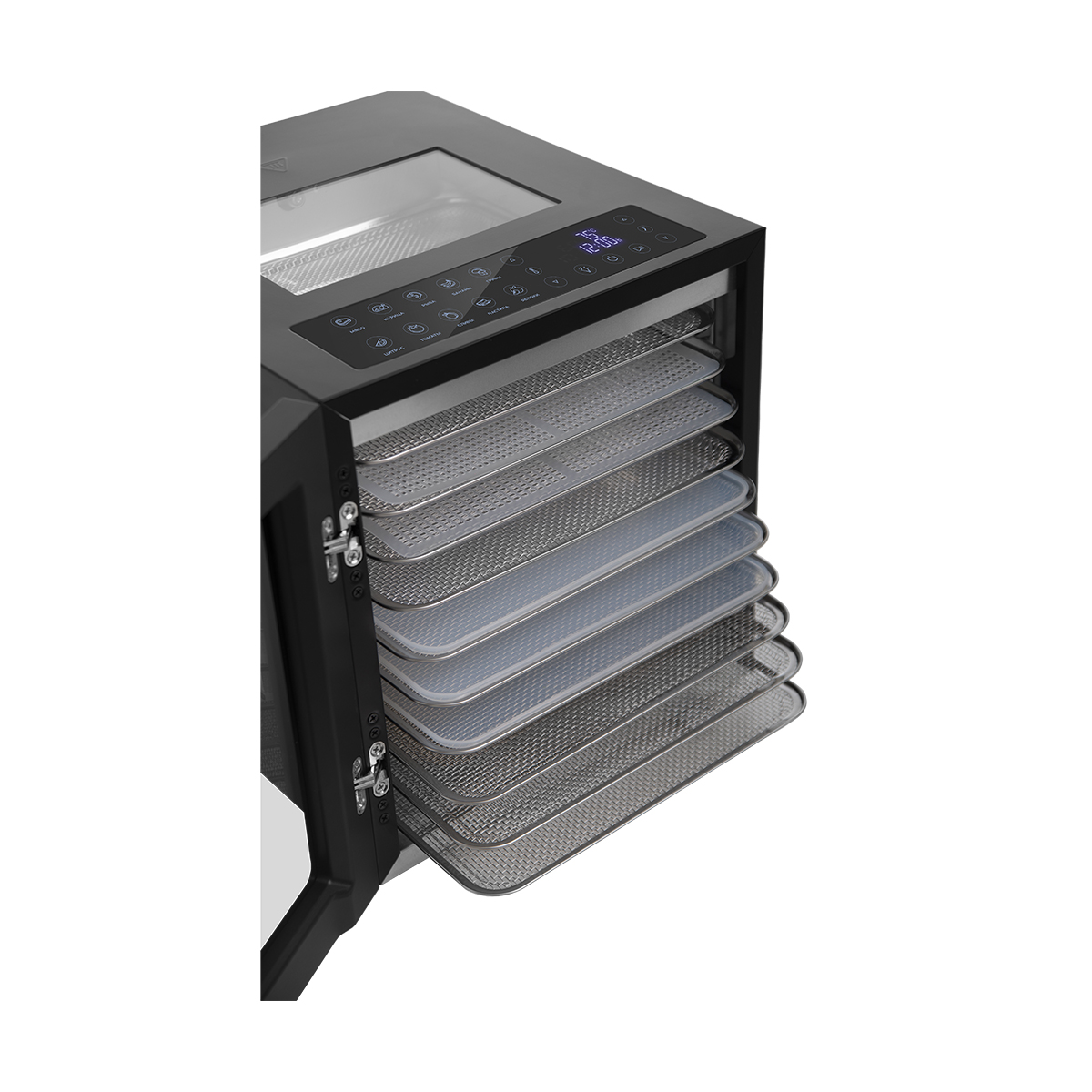 дегидратор, инструкция, книга рецептов, лоток для пастилы – 3шт, лоток для сбора капель – 1шт, поддоны – 10шт, сетчатые поддоны для трав и ягод – 3шт