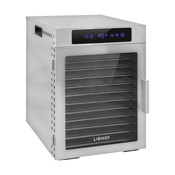дегидратор – 1 шт, инструкция по эксплуатации, книга рецептов, лоток для пастилы – 6 шт, лоток для сбора капель – 1 шт, мелкоячеистая сетка – 6 шт, поддон из нержавеющей стали – 12 шт