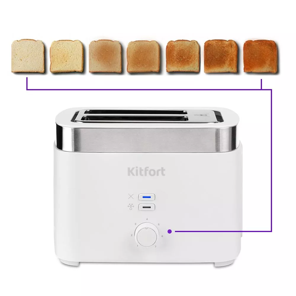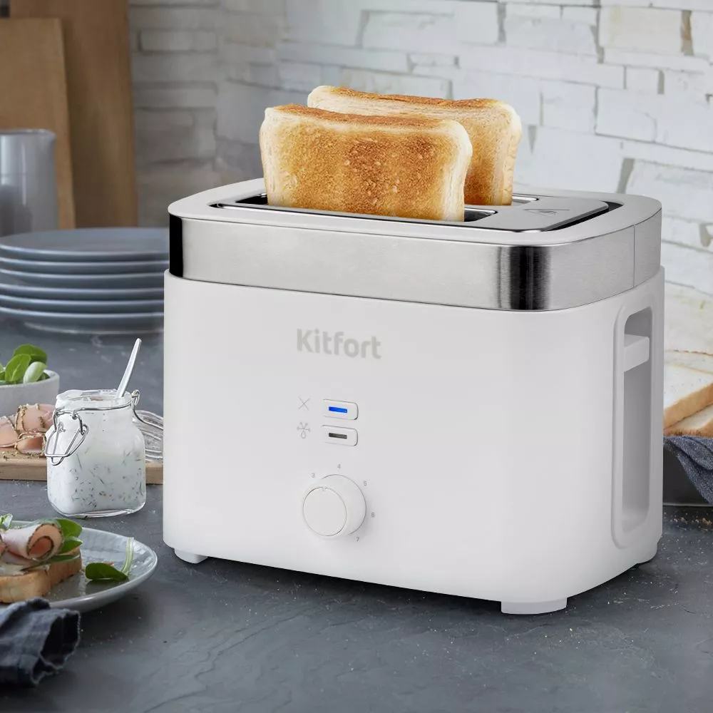 Электрический тостер Kitfort КТ-4025 создан для тех, кто любит полакомиться ароматным и хрустящим поджаренным хлебом. Особый вкус и цвет корочки тостов получаются благодаря карамелизации сахара, содержащегося в муке, при нагреве в процессе приготовления.
