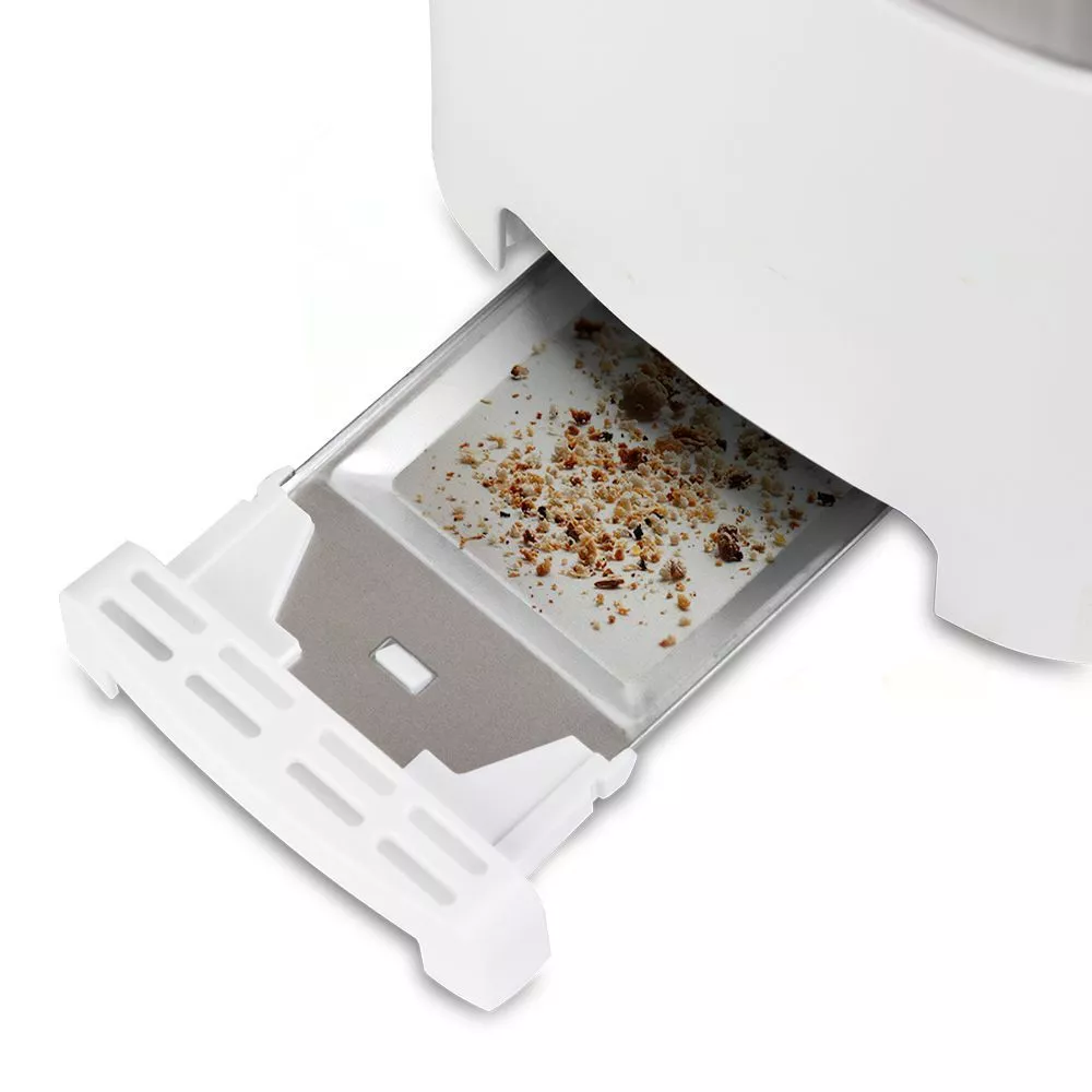 Снизу расположен выдвижной поддон для крошек, поэтому чистить тостер просто и удобно.