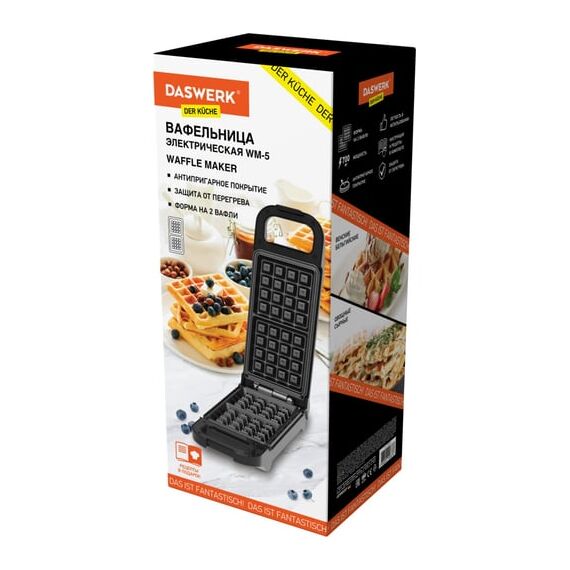 Электровафельница для венских бельгийских вафель DASWERK антипригарная, 2 вафли, 700 Вт Wm-5, 455652