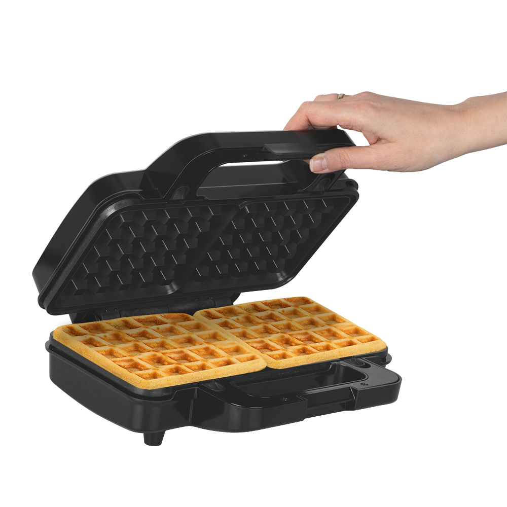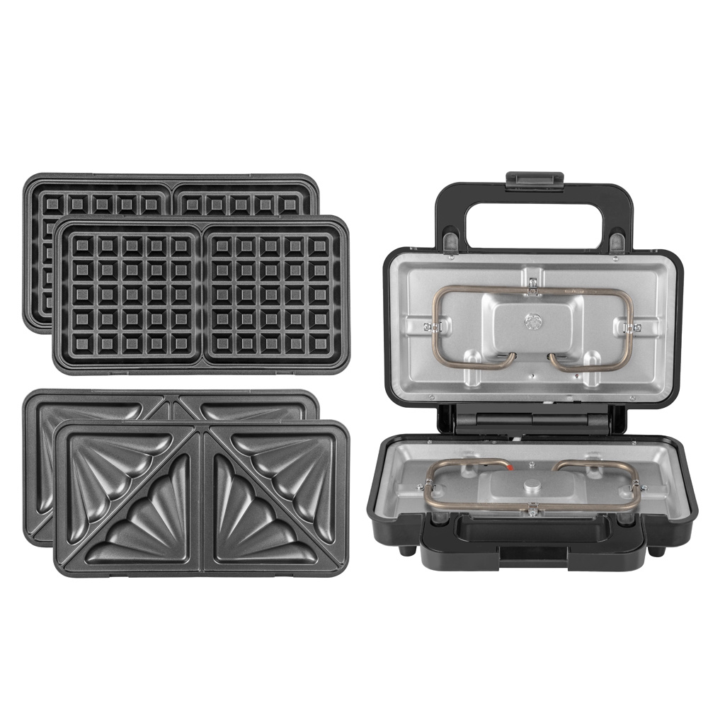 2 в 1: сменные панели для вафель и сэндвичей, Одновременное приготовление 2 вафель/ 4 сэндвичей, Корпус их термостойкого биопластика, Антипригарное покрытие, Индикатор включения, Индикатор готовности к работе, Эргономичная не нагревающаяся ручка, Автофиксация для облегчения закрывания , Защита от перегрева, Вертикальное хранение