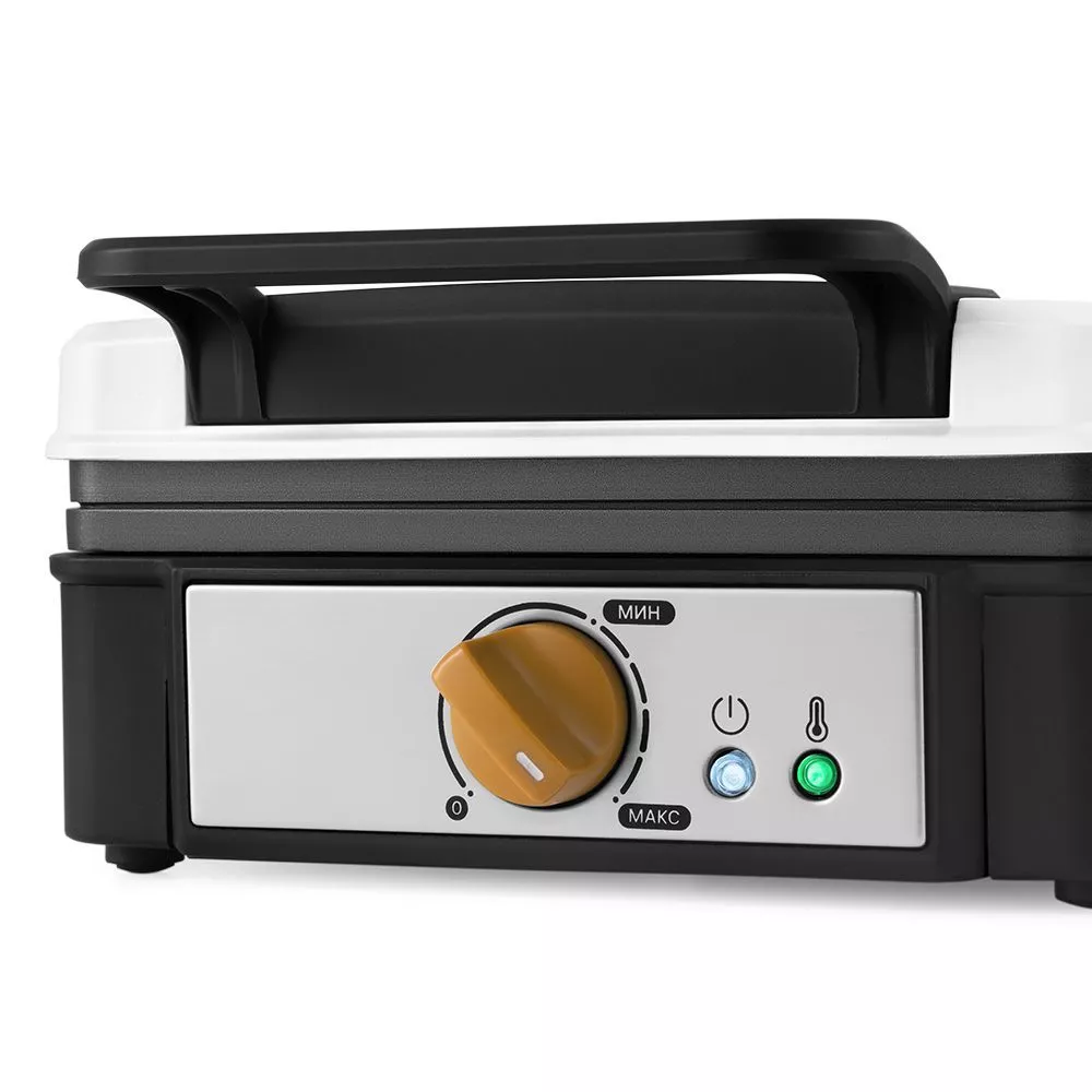Прибор оснащён индикатором питания и индикатором нагрева. Ручка регулировки температуры является ручкой термостата. Термостат обеспечивает возможность плавно регулировать температуру и поддерживать её в процессе приготовление.
