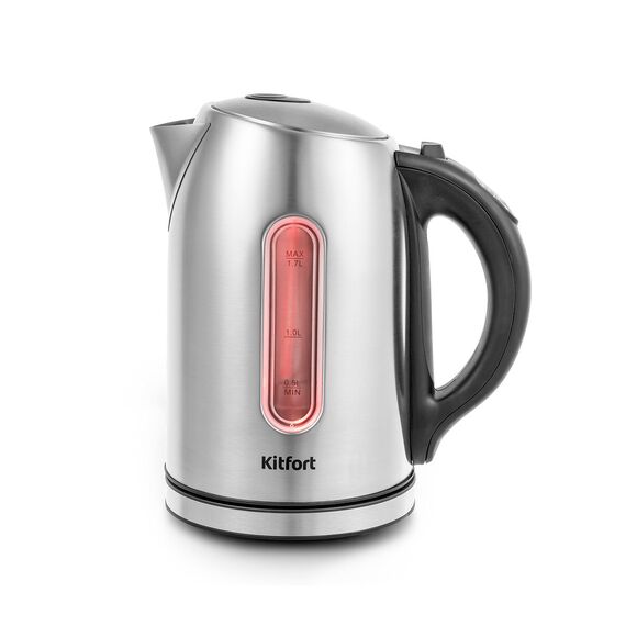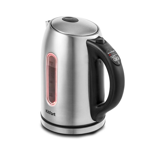 Чайник Kitfort КТ-6106 выполнен в стильном металлическом корпусе. Ручка чайника пластиковая, не нагревается и удобно лежит в руке. Для вашего удобства на ручке расположена панель управления чайником.