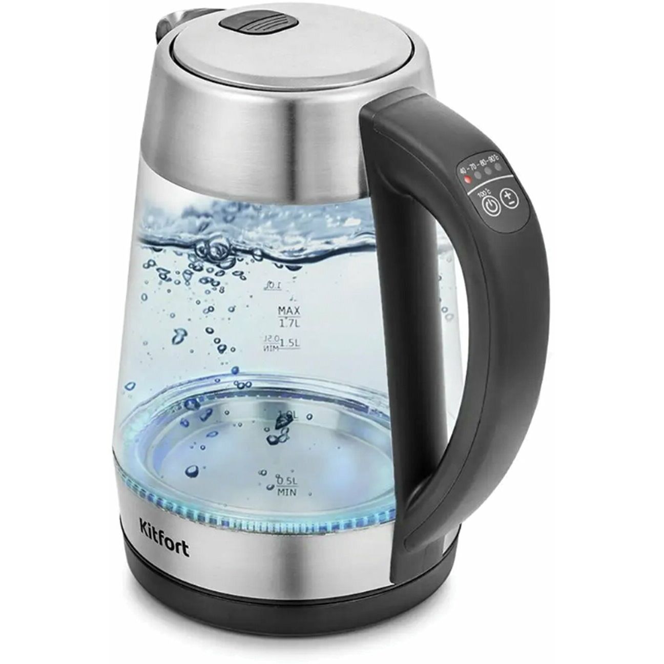 Чайник Kitfort КТ-6107 выполнен из сочетания трёх материалов — стекла, пластика и нержавеющей стали. Мерная шкала нанесена на прозрачную часть корпуса. Для вашего удобства на ручке расположена панель управления чайником.