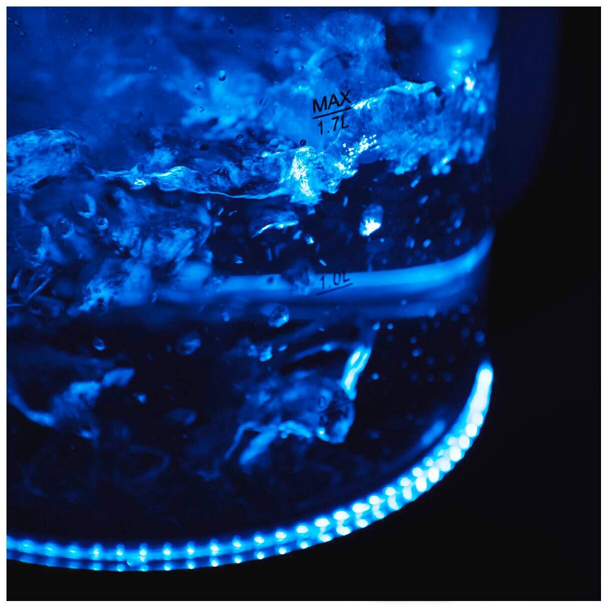 Современный стеклянный чайник будет отлично смотреться на любой кухне! При включении чайника загорается приятная голубая подсветка.