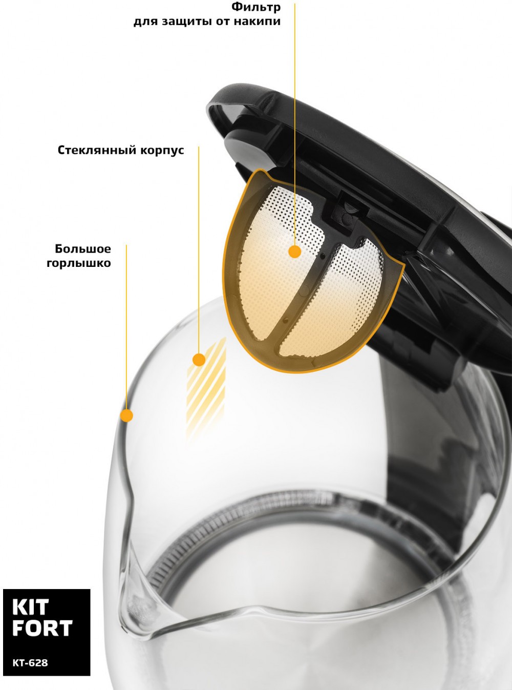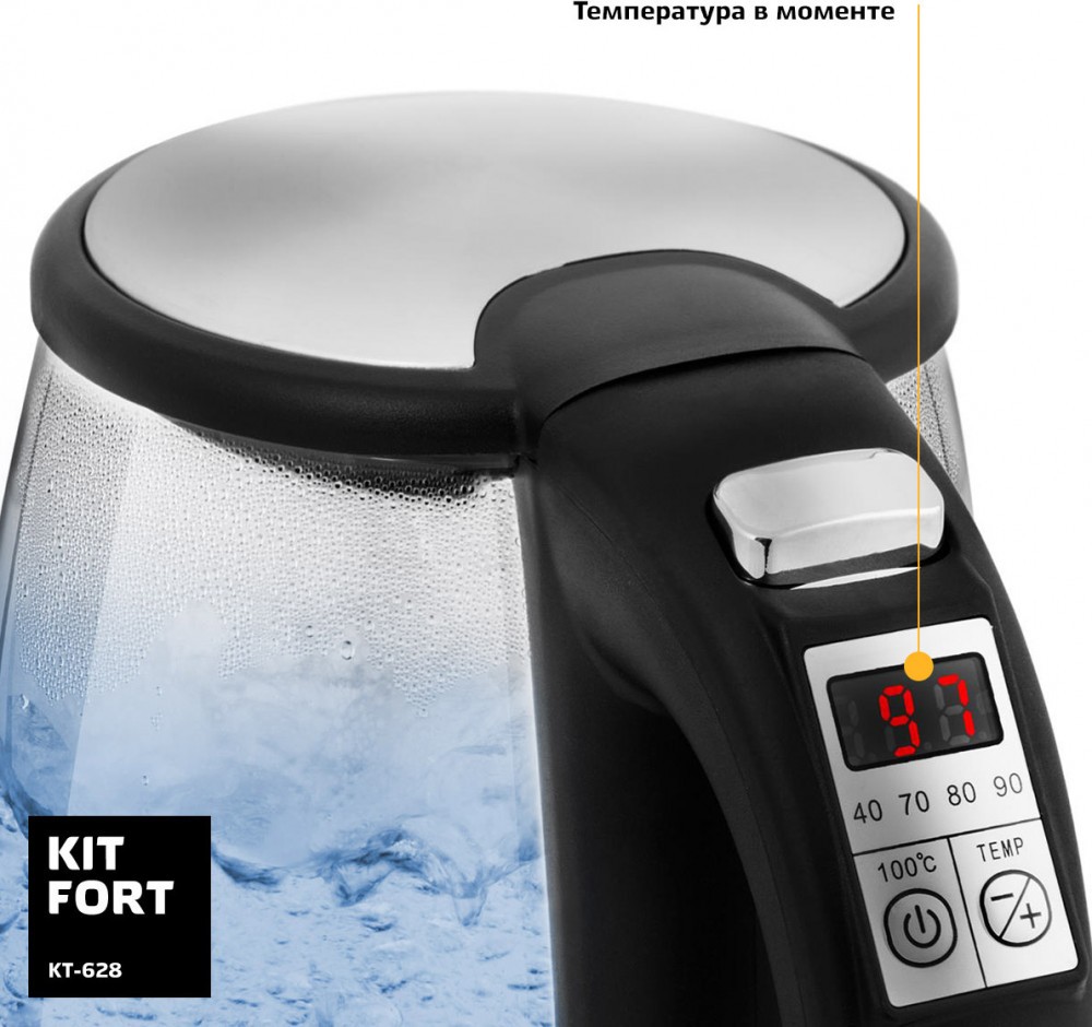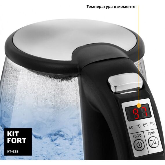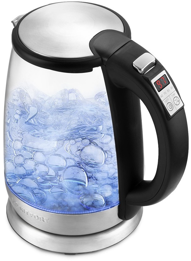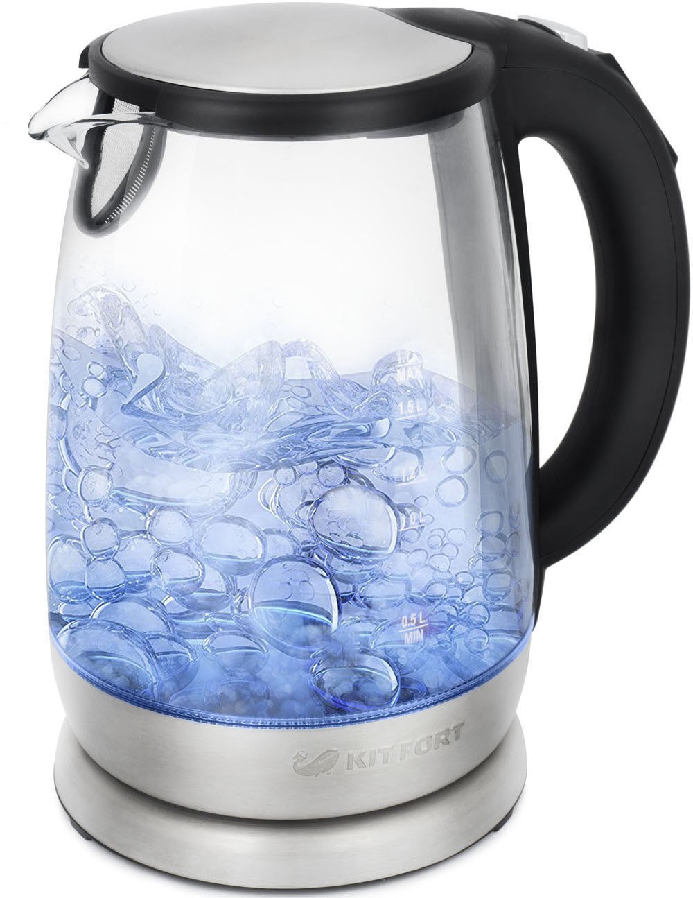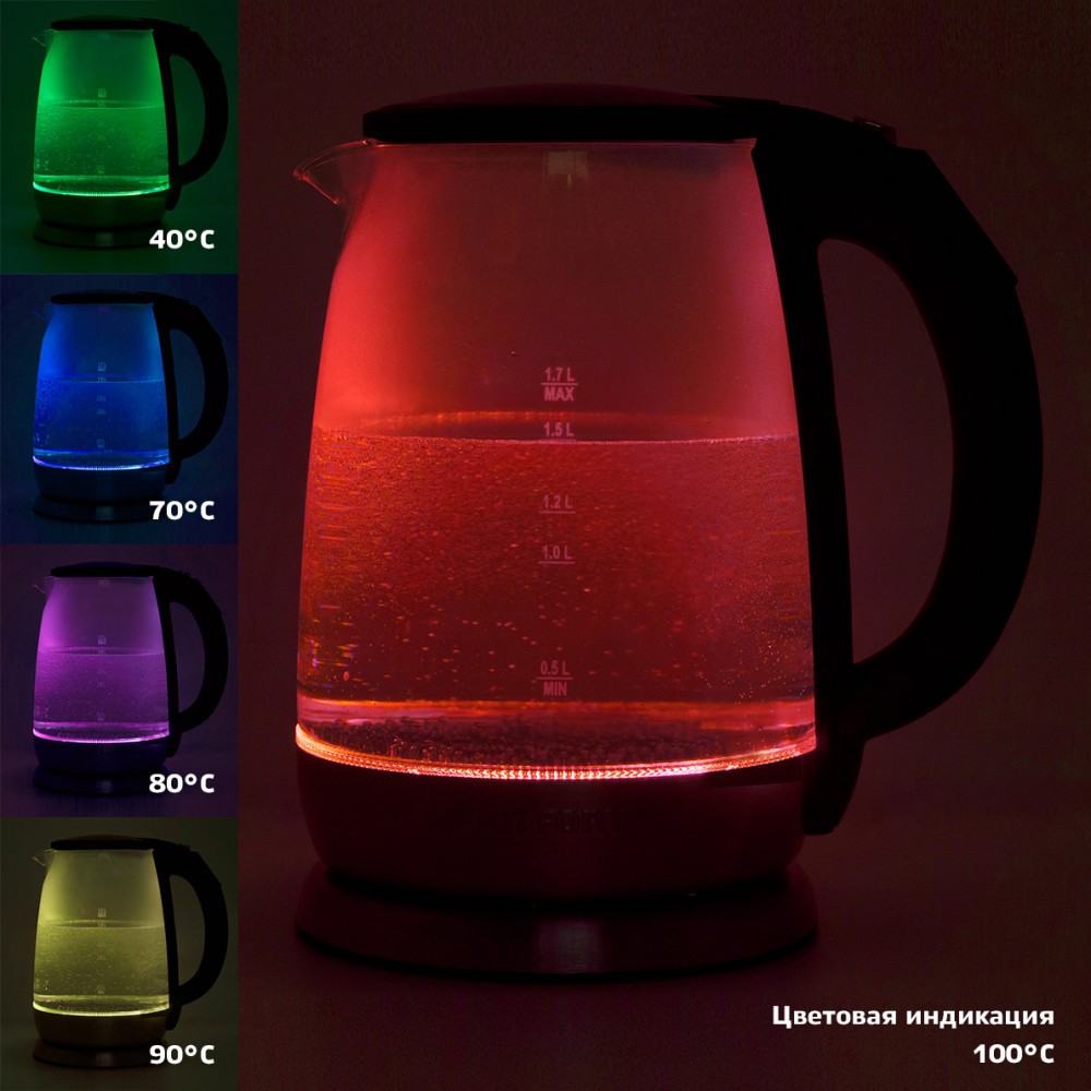 чайник, объём: 1.7 л, мощность: 1850-2200 Вт, закрытая спираль, индикация включения, материал корпуса: металл/стекло, подсветка воды при работе, поддержание тепла