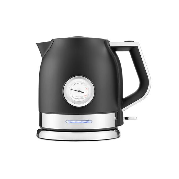 На корпусе чайника расположен термометр, который показывает температуру воды. Это удобно, если вы готовите напитки, для которых требуются определенная температура воды, например, зеленый чай, чёрный чай, кофе и т. д.