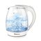 Объем 1,7 л, 1850-2200 Вт, стеклянный корпус, диск, LED подсветка при включении, автоматическое отключение при закипании.